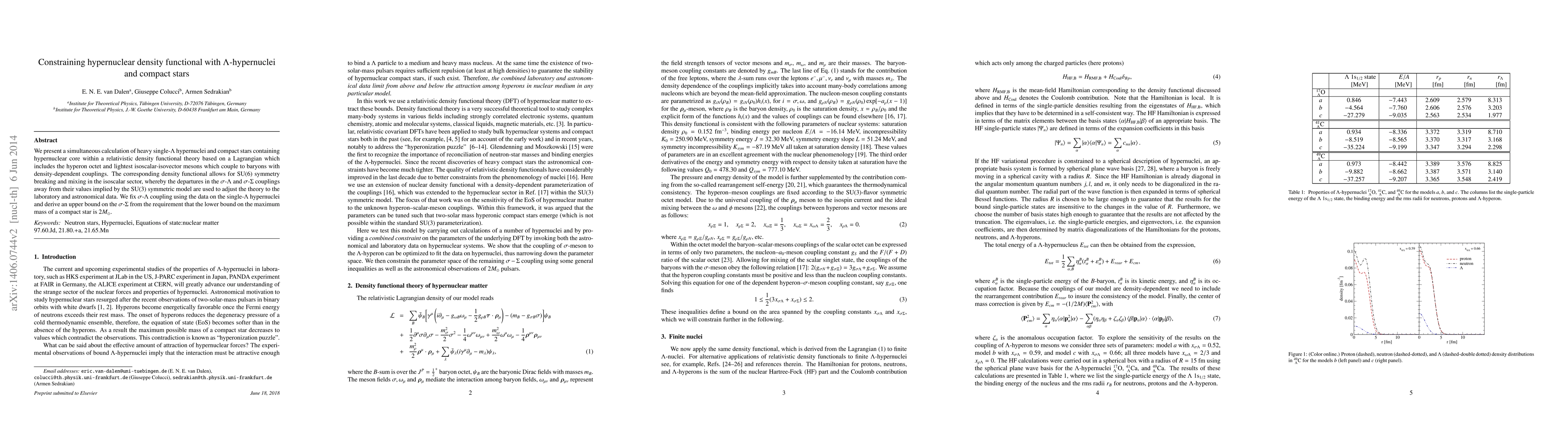 We present a simultaneous calculation of heavy single-$\Lambda$ hypernuclei and compact stars containing hypernuclear core within a relativistic density functional theory based on a Lagrangian which includes the hyperon octet and lightest isoscalar-isovector mesons which couple to baryons with density-dependent couplings. The corresponding density functional allows for SU(6) symmetry breaking and mixing in the isoscalar sector, whereby the departures in the $\sigma$-$\Lambda$ and $\sigma$-$\Sigma$ couplings away from their values implied by the SU(3) symmetric model are used to adjust the theory to the laboratory and astronomical data. We fix $\sigma$-$\Lambda$ coupling using the data on the single-$\Lambda$ hypernuclei and derive an upper bound on the $\sigma$-$\Sigma$ from the requirement that the lower bound on the maximum mass of a compact star is $2 M_{\odot}$.