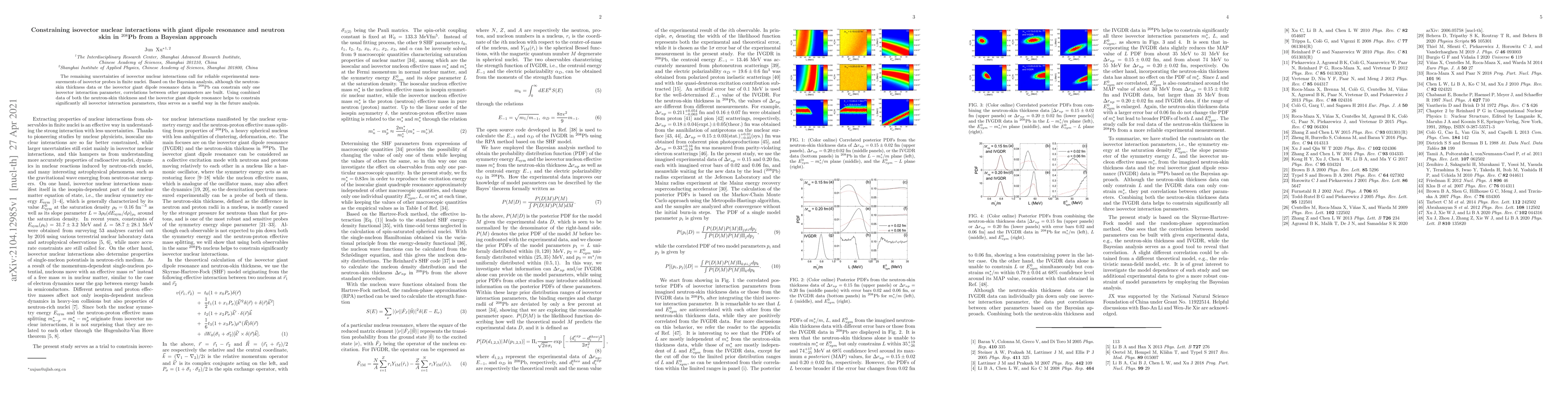 This study employs Bayesian analysis to constrain isovector nuclear interactions by combining neutron-skin thickness and isovector giant dipole resonance data in $^{208}$Pb. While individual data sets constrain only one interaction parameter, combined data significantly constrain all parameters, offering a powerful method for future analyses.