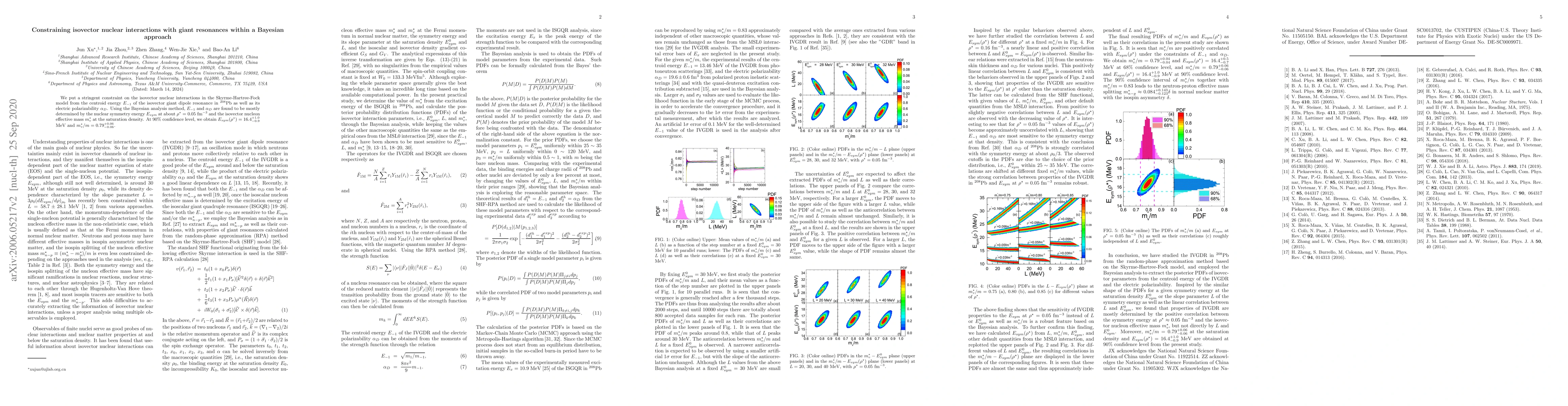This paper constrains isovector nuclear interactions in the Skyrme-Hartree-Fock model using Bayesian analysis of the isovector giant dipole resonance in $^{208}$Pb. The results indicate that the centroid energy and electric polarizability are primarily determined by the nuclear symmetry energy and isovector nucleon effective mass, yielding $E_{sym}(\rho^\star) = 16.4 ^{+1.0}_{-0.9}$ MeV and $m_v^\star/m = 0.79 ^{+0.06}_{-0.06}$ at $90\%$ confidence level.