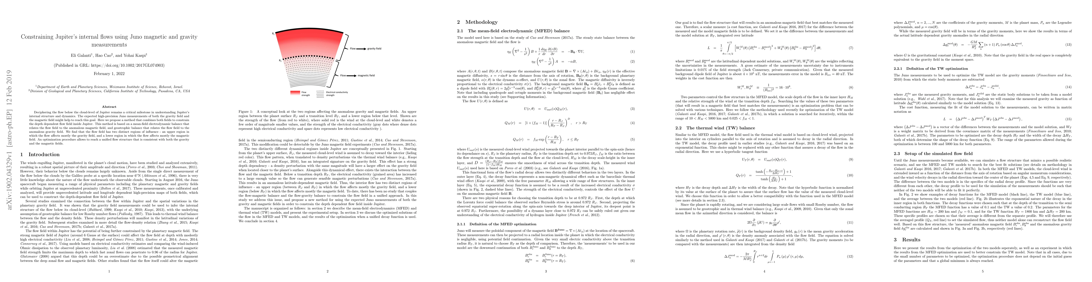 This paper proposes a method to constrain Jupiter's internal flows using Juno's high-precision gravity and magnetic field measurements. It combines these fields to deduce a unified flow structure, revealing two distinct regions where flows predominantly affect either gravity or magnetic fields.