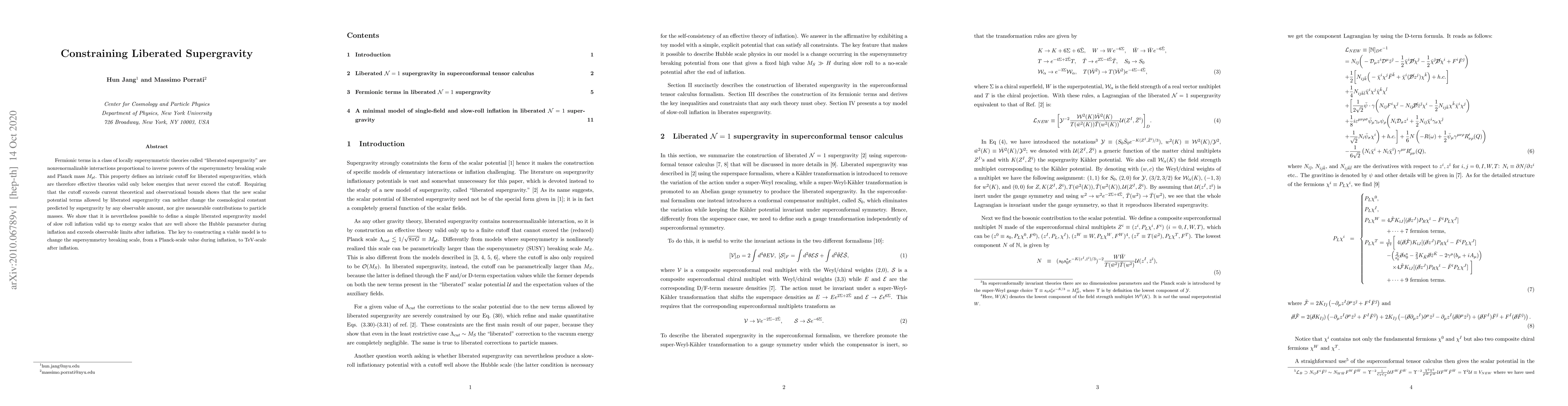 Fermionic terms in a class of locally supersymmetric theories called "liberated supergravity" are nonrenormalizable interactions proportional to inverse powers of the supersymmetry breaking scale and Planck mass. This property defines an intrinsic cutoff for liberated supergravities, which are therefore effective theories valid only below energies that never exceed the cutoff. Requiring that the cutoff exceeds current theoretical and observational bounds shows that the new scalar potential terms allowed by liberated supergravity can neither change the cosmological constant predicted by supergravity by any observable amount, nor give measurable contributions to particle masses. We show that it is nevertheless possible to define a simple liberated supergravity model of slow roll inflation valid up to energy scales that are well above the Hubble parameter during inflation and exceeds observable limits after inflation. The key to constructing a viable model is to change the supersymmetry breaking scale, from a Planck-scale value during inflation, to TeV-scale after inflation.