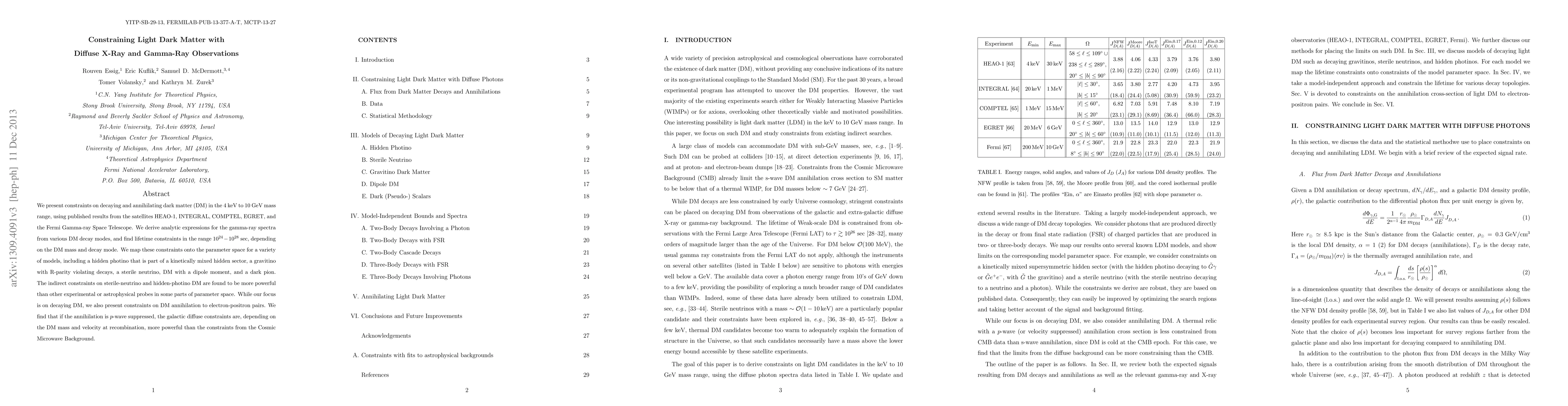 This research derives constraints on decaying and annihilating dark matter (DM) using data from various satellites. It presents analytic expressions for gamma-ray spectra from DM decay modes, finding lifetime constraints from 10^24 to 10^28 seconds. The study maps these constraints onto diverse DM models, revealing that indirect sterile-neutrino and hidden-photino DM constraints surpass other probes in certain parameter spaces. Additionally, it discusses annihilation constraints, finding that p-wave suppressed galactic diffuse constraints can be more powerful than Cosmic Microwave Background constraints for DM mass and velocity at recombination.