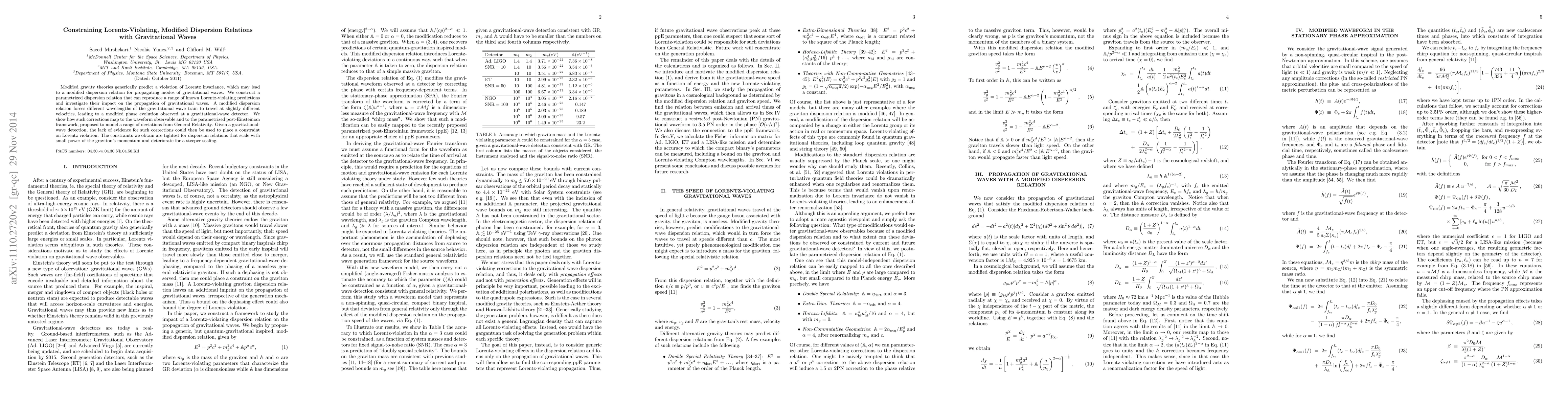 This paper constructs a parametrized dispersion relation to model Lorentz-violating predictions in modified gravity theories and investigates their impact on gravitational wave propagation. It shows how deviations from General Relativity manifest as modified phase evolution in detected gravitational waves, thus enabling constraints on Lorentz violation based on gravitational wave observations.