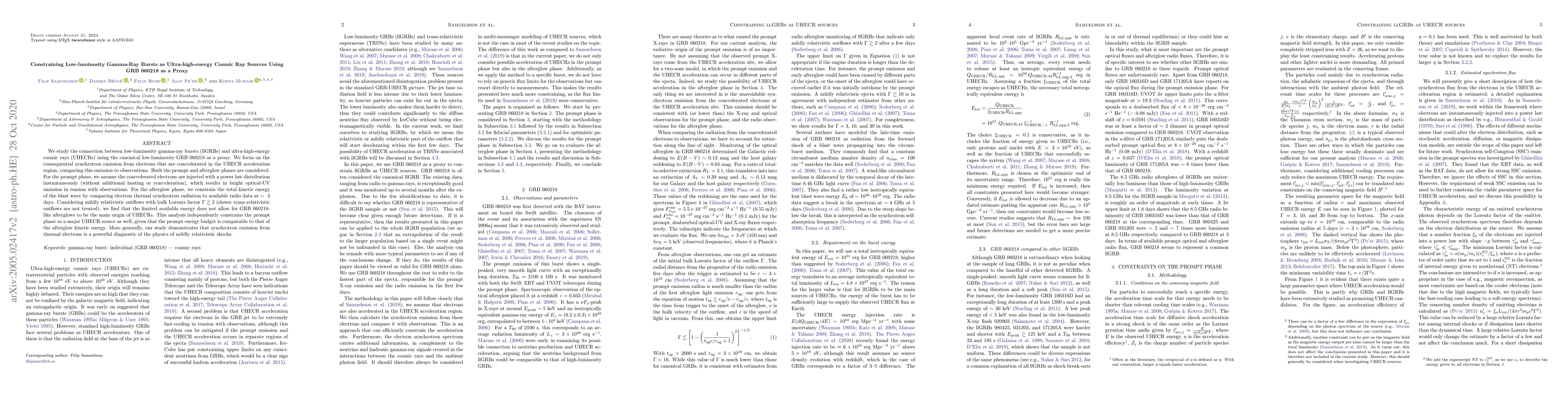 This study explores the connection between low-luminosity gamma-ray bursts and ultra-high-energy cosmic rays, suggesting that synchrotron emission from thermal electrons is a powerful diagnostic of mildly relativistic shocks in UHECR acceleration regions.