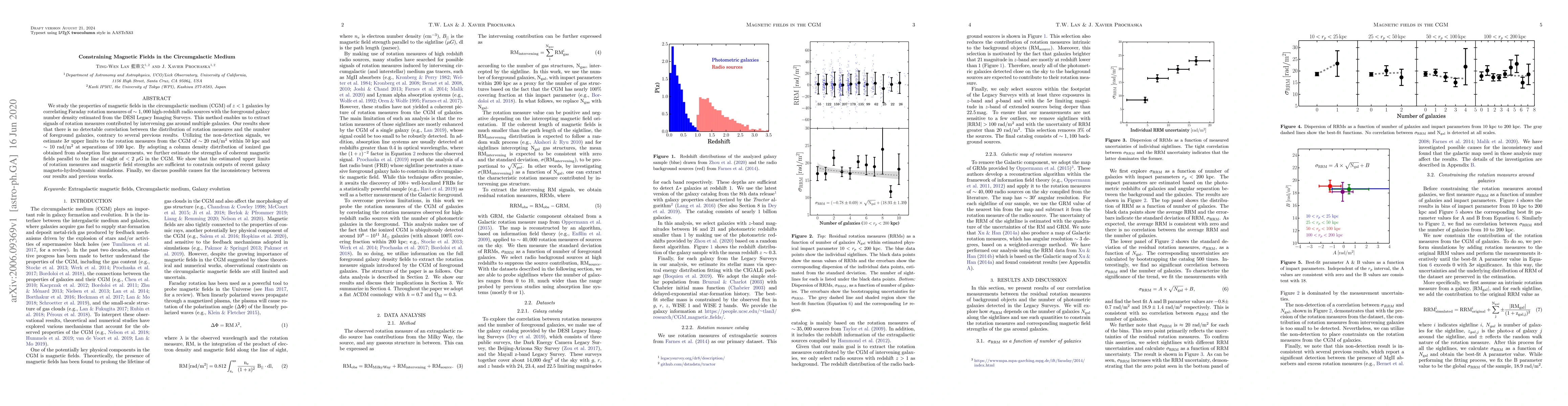 Researchers investigated magnetic fields in galaxy circumgalactic medium using Faraday rotation measures, finding no correlation with galaxy number density and estimating upper limits of < 20 rad/m^2 within 50 kpc.
