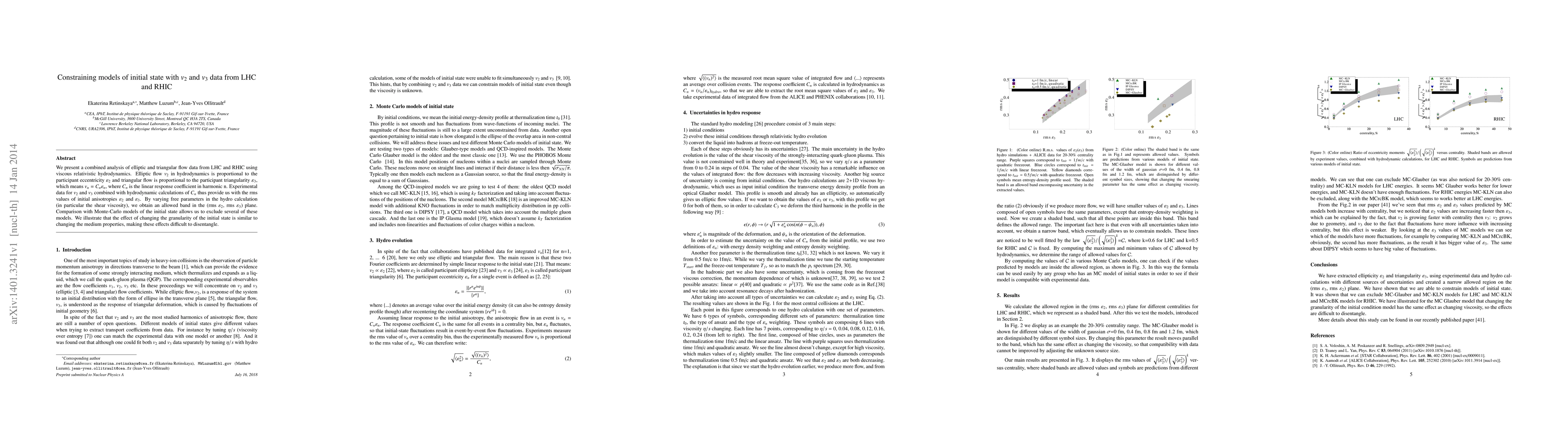 We present a combined analysis of elliptic and triangular flow data from LHC and RHIC using viscous relativistic hydrodynamics. Elliptic flow $v_2$ in hydrodynamics is proportional to the participant eccentricity $\varepsilon_2$ and triangular flow is proportional to the participant triangularity $\varepsilon_3$, which means $v_n=C_n\varepsilon_n$, where $C_n$ is the linear response coefficient in harmonic n. Experimental data for $v_2$ and $v_3$ combined with hydrodynamic calculations of $C_n$ thus provide us with the rms values of initial anisotropies $\varepsilon_2$ and $\varepsilon_3$. By varying free parameters in the hydro calculation (in particular the shear viscosity), we obtain an allowed band in the (rms $\varepsilon_2$, rms $\varepsilon_3$) plane. Comparison with Monte-Carlo models of the initial state allows us to exclude several of these models. We illustrate that the effect of changing the granularity of the initial state is similar to changing the medium properties, making these effects difficult to disentangle.