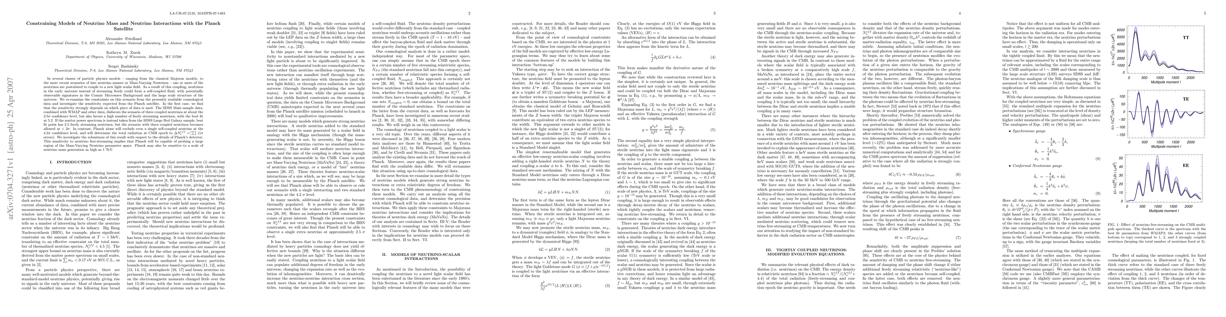 In several classes of particle physics models -- ranging from the classical Majoron models, to the more recent scenarios of late neutrino masses or Mass-Varying Neutrinos -- one or more of the neutrinos are postulated to couple to a new light scalar field. As a result of this coupling, neutrinos in the early universe instead of streaming freely could form a self-coupled fluid, with potentially observable signatures in the Cosmic Microwave Background and the large scale structure of the universe. We re-examine the constraints on this scenario from the presently available cosmological data and investigate the sensitivity expected from the Planck satellite. In the first case, we find that the sensitivity strongly depends on which piece of data is used. The SDSS Main sample data, combined with WMAP and other data, disfavors the scenario of three coupled neutrinos at about the 3.5$\sigma$ confidence level, but also favors a high number of freely streaming neutrinos, with the best fit at 5.2. If the matter power spectrum is instead taken from the SDSS Large Red Galaxy sample, best fit point has 2.5 freely streaming neutrinos, but the scenario with three coupled neutrinos becomes allowed at $2\sigma$. In contrast, Planck alone will exclude even a single self-coupled neutrino at the $4.2\sigma$ confidence level, and will determine the total radiation at CMB epoch to $\Delta N_\nu^{eff} = ^{+0.5}_{-0.3}$ ($1\sigma$ errors). We investigate the robustness of this result with respect to the details of Planck's detector. This sensitivity to neutrino free-streaming implies that Planck will be capable of probing a large region of the Mass-Varying Neutrino parameter space. Planck may also be sensitive to a scale of neutrino mass generation as high as 1 TeV.