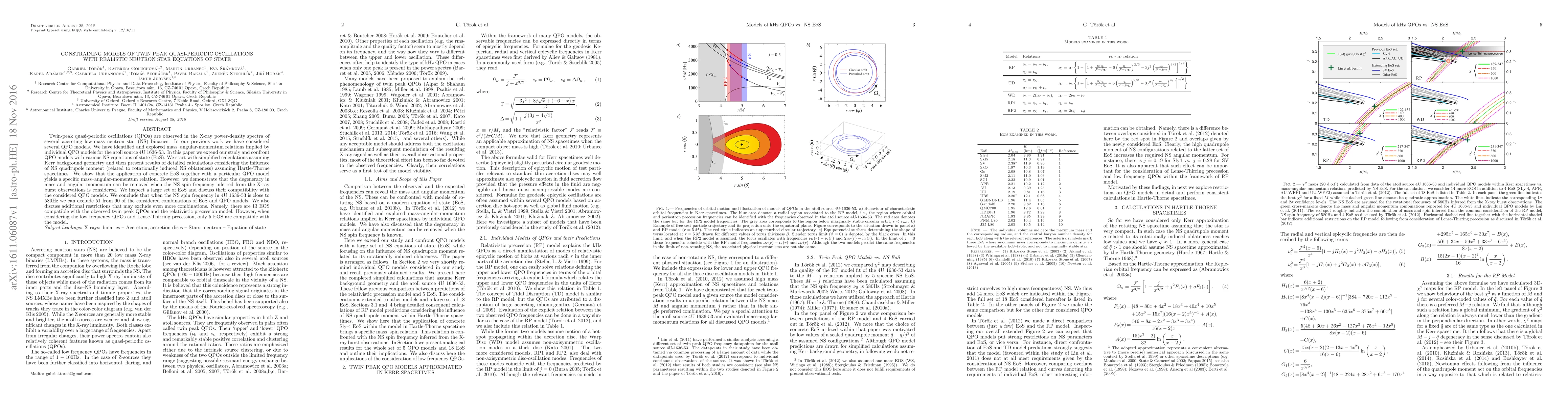 This paper investigates the compatibility of twin-peak quasi-periodic oscillations (QPOs) with various neutron star equations of state (EoS) and models, demonstrating that specific EoS and QPO models yield distinct mass-angular momentum relations. The study excludes many EoS combinations when considering the NS spin frequency, leaving only a few compatible with the observed QPOs.