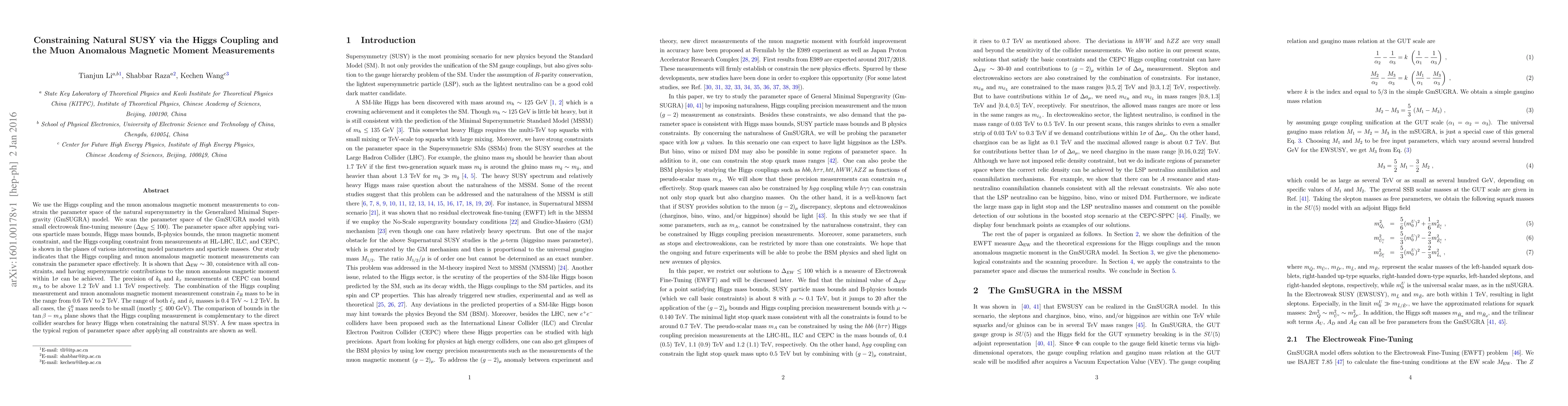 This paper constrains the natural supersymmetry (SUSY) parameter space in the Generalized Minimal Supergravity (GmSUGRA) model using the Higgs coupling and muon anomalous magnetic moment measurements. The study finds that these measurements effectively limit the sparticle masses, with $\tilde{e}_R$ masses ranging from 0.6 to 2 TeV, and $\tilde{\chi}_1^0$ masses mostly below 400 GeV.