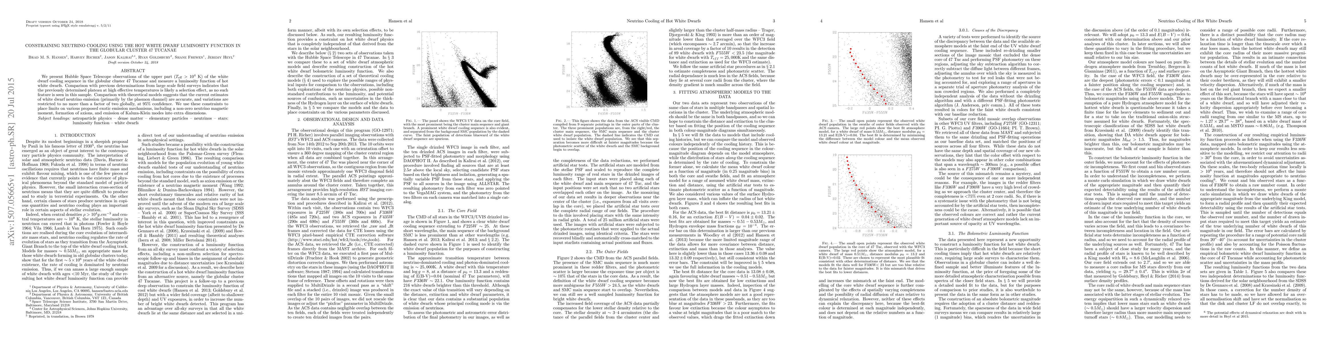 This paper uses Hubble Space Telescope observations of hot white dwarfs in 47 Tucanae to constrain neutrino cooling mechanisms, finding no evidence for a previously reported plateau in luminosity. Theoretical models support current estimates of neutrino emission, limiting proposed exotic emission mechanisms.