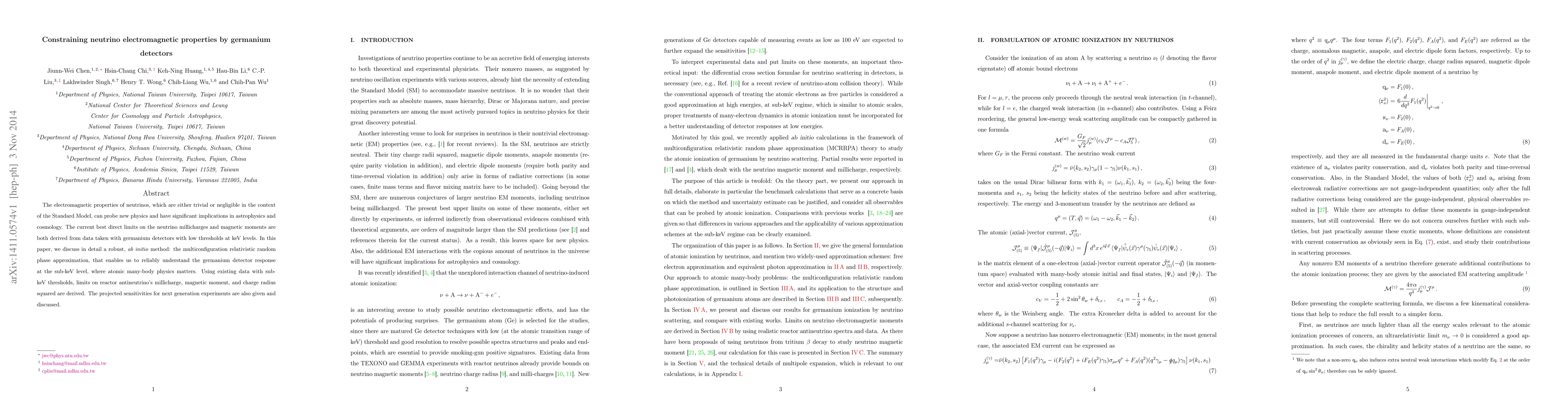 This paper employs a multiconfiguration relativistic random phase approximation to analyze germanium detector data, aiming to constrain neutrino electromagnetic properties like millicharges and magnetic moments. It derives current limits and projects future sensitivities for next-generation experiments, highlighting the significance of sub-keV level atomic many-body physics.