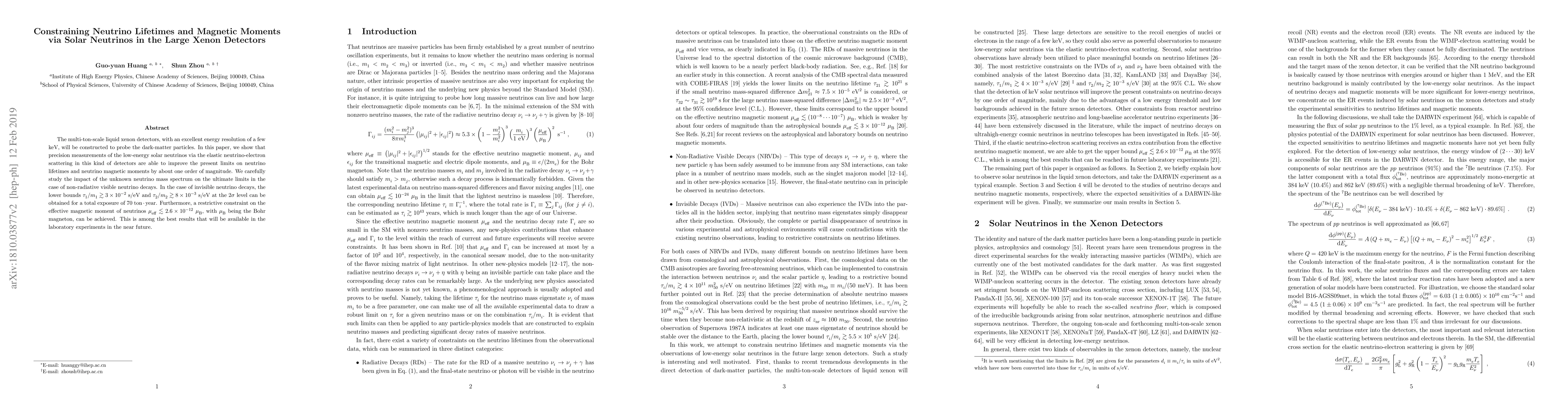 The multi-ton-scale liquid xenon detectors, with an excellent energy resolution of a few keV, will be constructed to probe the dark-matter particles. In this paper, we show that precision measurements of the low-energy solar neutrinos via the elastic neutrino-electron scattering in this kind of detectors are able to improve the present limits on neutrino lifetimes and neutrino magnetic moments by about one order of magnitude. We carefully study the impact of the unknown neutrino mass spectrum on the ultimate limits in the case of non-radiative visible neutrino decays. In the case of invisible neutrino decays, the lower bounds $\tau^{}_1/m^{}_1 \gtrsim 3 \times 10^{-2}~{\rm s}/{\rm eV}$ and $\tau^{}_2/m^{}_2 \gtrsim 8\times 10^{-3}~{\rm s}/{\rm eV}$ at the $2\sigma$ level can be obtained for a total exposure of $70~{\rm ton}\cdot {\rm year}$. Furthermore, a restrictive constraint on the effective magnetic moment of neutrinos $\mu^{}_{\rm eff} \lesssim 2.6\times 10^{-12}~\mu^{}_{\rm B}$, with $\mu^{}_{\rm B}$ being the Bohr magneton, can be achieved. This is among the best results that will be available in the laboratory experiments in the near future.