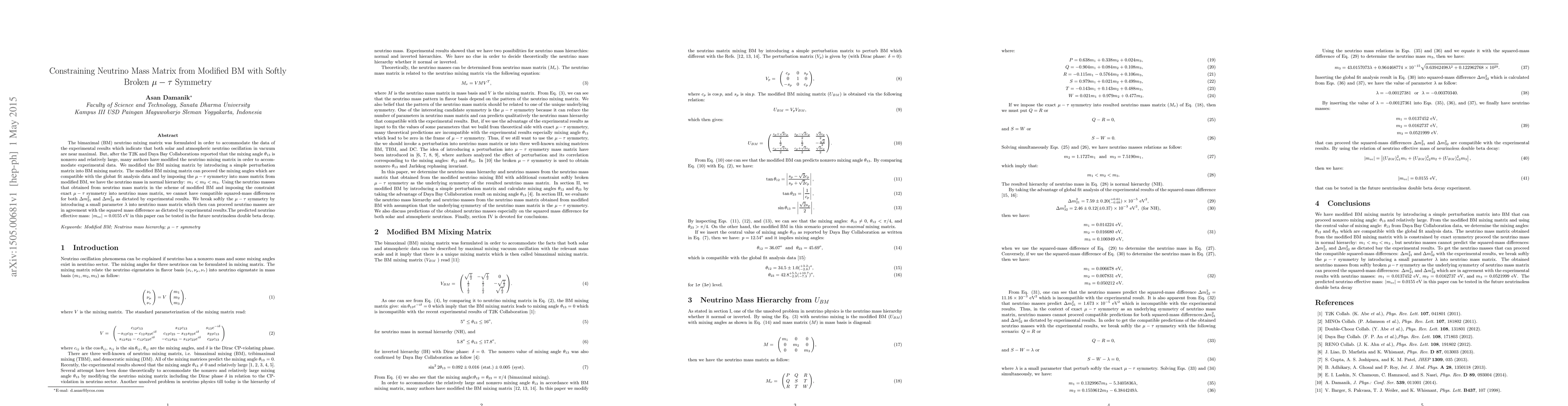 matrix by introducing a simple perturbation matrix into BM mixing matrix. The