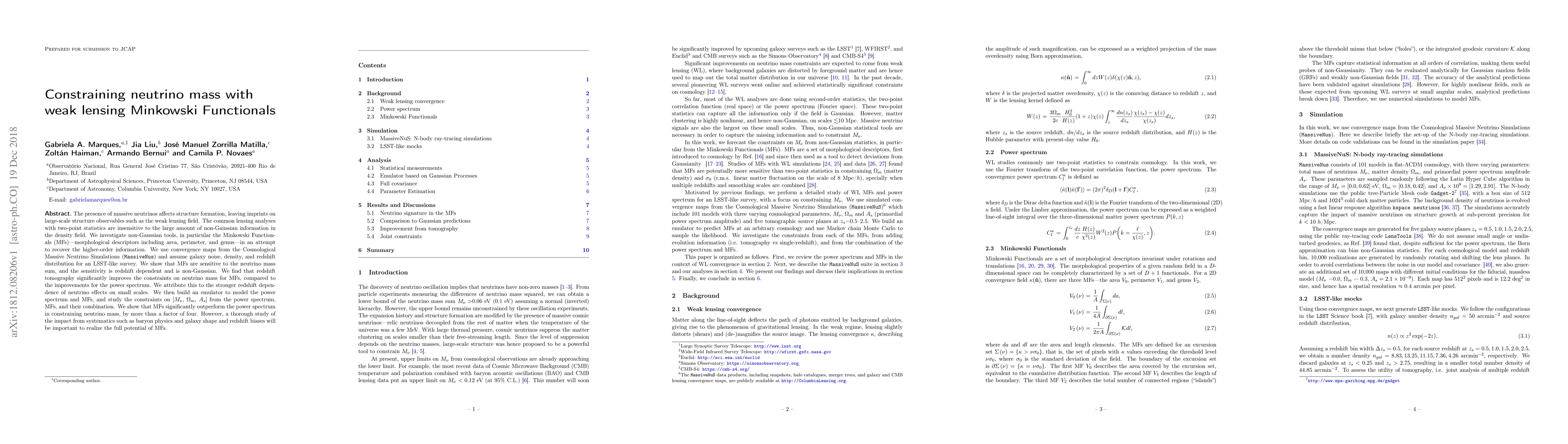 This paper explores the use of Minkowski Functionals (MFs) in weak lensing to constrain neutrino mass, finding that MFs are more sensitive to non-Gaussian information than traditional two-point statistics. The study shows that MFs can significantly improve neutrino mass constraints, outperforming the power spectrum by more than a factor of four, though the impact of systematics remains to be fully understood.