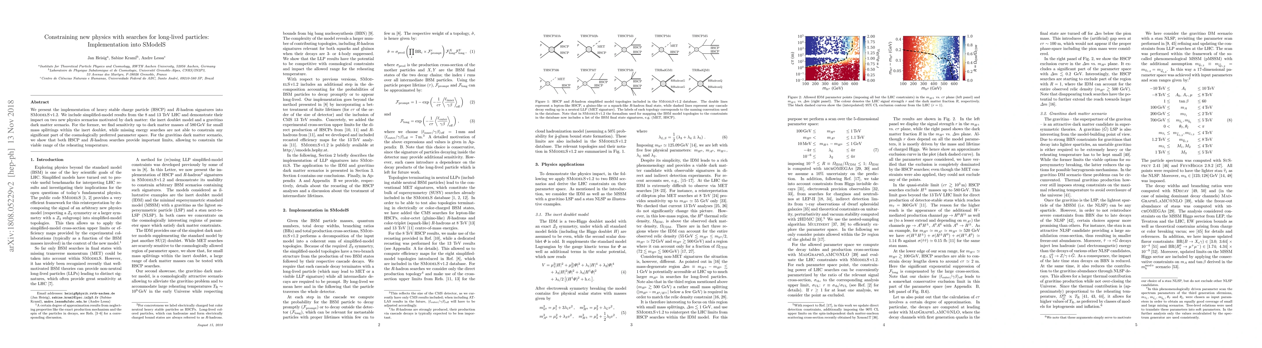 Researchers used the SModelS tool to search for long-lived particles in LHC data, setting limits on dark matter models and constraining the reheating temperature.