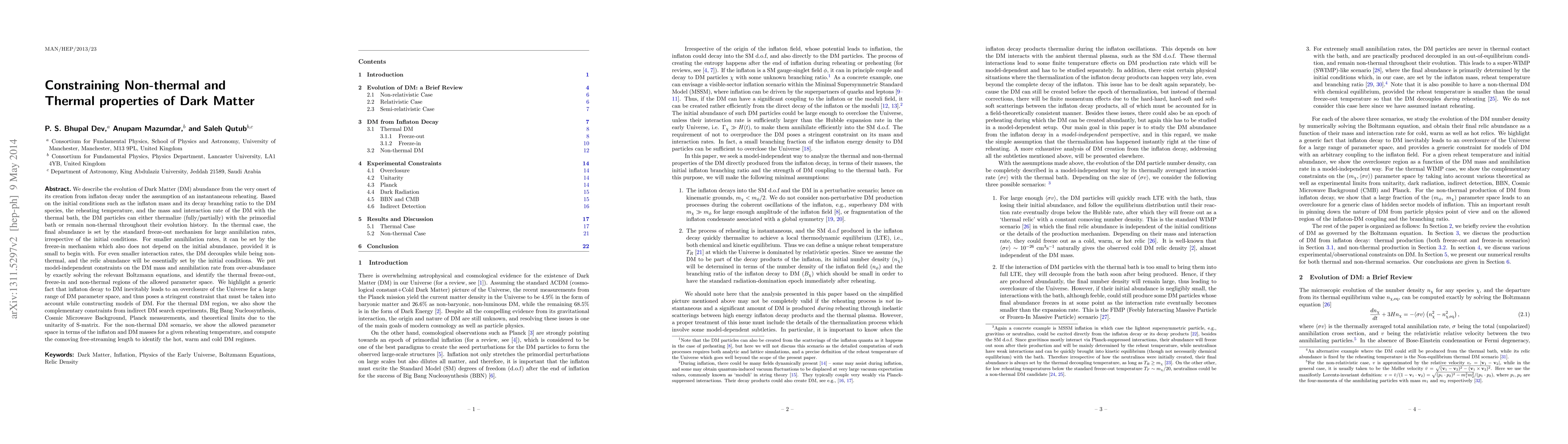 We describe the evolution of Dark Matter (DM) abundance from the very onset of its creation from inflaton decay under the assumption of an instantaneous reheating. Based on the initial conditions such as the inflaton mass and its decay branching ratio to DM, reheating temperature, and the DM mass and interaction rate with the thermal bath, the DM particles can either thermalize (fully/partially) with the primordial bath or remain non-thermal throughout their evolution history. In the thermal case, the final abundance is set by the standard freeze-out mechanism for large annihilation rates, irrespective of the initial conditions. For smaller annihilation rates, it can be set by the freeze-in mechanism, also independent of the initial abundance, provided it is small to begin with. For even smaller interaction rates, the DM decouples while being non-thermal, and the relic abundance will be essentially set by the initial conditions. We put model-independent constraints on the DM mass and annihilation rate from over-abundance by exactly solving the relevant Boltzmann equations, and identify the thermal freeze-out, freeze-in and non-thermal regions of the allowed parameter space. We highlight a generic fact that inflaton decay to DM inevitably leads to an overclosure of the Universe for a large range of DM parameter space, and thus poses a stringent constraint that must be taken into account while constructing models of DM. For the thermal DM region, we also show the complementary constraints from indirect DM search experiments, Big Bang Nucleosynthesis, Cosmic Microwave Background, Planck measurements, and theoretical limits due to the unitarity of S-matrix. For the non-thermal DM scenario, we show the allowed parameter space in terms of the inflaton and DM masses for a given reheating temperature, and compute the comoving free-streaming length to identify the hot, warm and cold DM regimes.