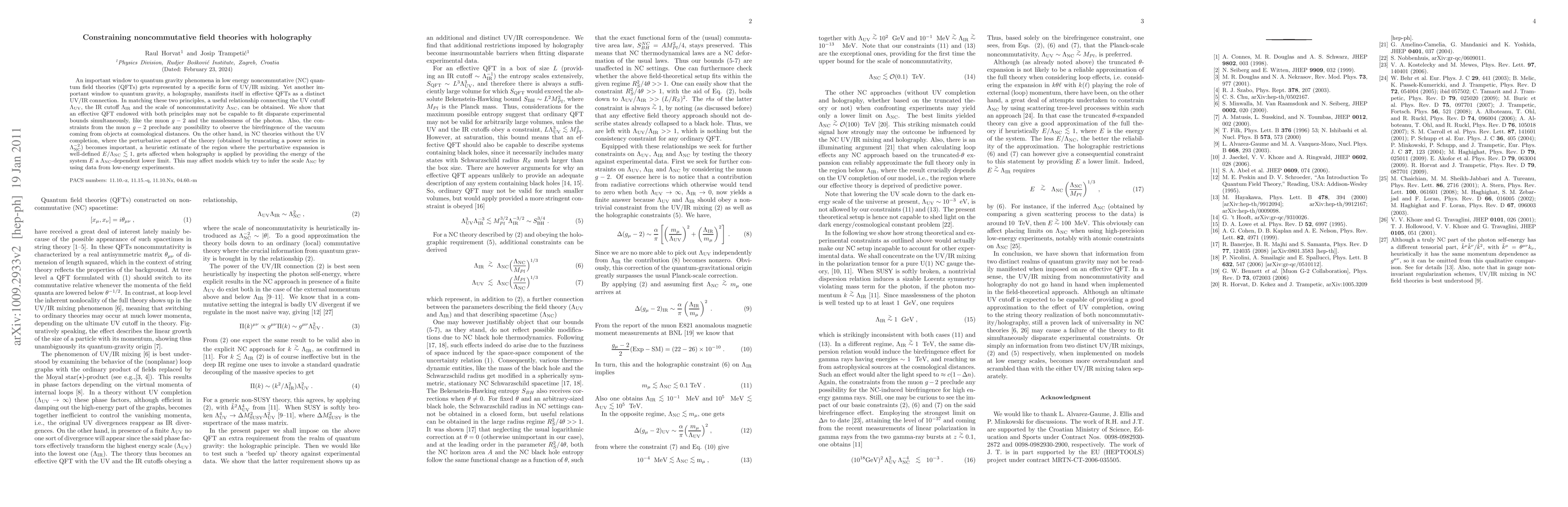 An important window to quantum gravity phenomena in low energy noncommutative (NC) quantum field theories (QFTs) gets represented by a specific form of UV/IR mixing. Yet another important window to quantum gravity, a holography, manifests itself in effective QFTs as a distinct UV/IR connection. In matching these two principles, a useful relationship connecting the UV cutoff $\Lambda_{\rm UV}$, the IR cutoff $\Lambda_{\rm IR}$ and the scale of noncommutativity $\Lambda_{\rm NC}$, can be obtained. We show that an effective QFT endowed with both principles may not be capable to fit disparate experimental bounds simultaneously, like the muon $g-2$ and the masslessness of the photon. Also, the constraints from the muon $g-2$ preclude any possibility to observe the birefringence of the vacuum coming from objects at cosmological distances. On the other hand, in NC theories without the UV completion, where the perturbative aspect of the theory (obtained by truncating a power series in $ \Lambda_{\rm NC}^{-2}$) becomes important, a heuristic estimate of the region where the perturbative expansion is well-defined $E/ \Lambda_{\rm NC} \lesssim 1$, gets affected when holography is applied by providing the energy of the system $E$ a $\Lambda_{\rm NC}$-dependent lower limit. This may affect models which try to infer the scale $\Lambda_{\rm NC}$ by using data from low-energy experiments.
