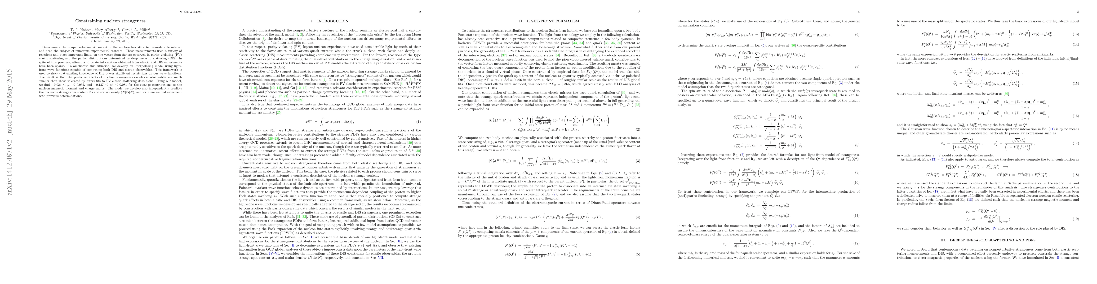 Determining the nonperturbative $s\bar{s}$ content of the nucleon has attracted considerable interest and been the subject of numerous experimental searches. These measurements used a variety of reactions and place important limits on the vector form factors observed in parity-violating (PV) elastic scattering and the parton distributions determined by deep inelastic scattering (DIS). In spite of this progress, attempts to relate information obtained from elastic and DIS experiments have been sparse. To ameliorate this situation, we develop an interpolating model using light-front wave functions capable of computing both DIS and elastic observables. This framework is used to show that existing knowledge of DIS places significant restrictions on our wave functions. The result is that the predicted effects of nucleon strangeness on elastic observables are much smaller than those tolerated by direct fits to PV elastic scattering data alone. Using our model, we find $-0.024 \le \mu_s \le 0.035$, and $-0.137 \le \rho^D_s \le 0.081$ for the strange contributions to the nucleon magnetic moment and charge radius. The model we develop also independently predicts the nucleon's strange spin content $\Delta s$ and scalar density $\langle N| \bar{s}s | N \rangle$, and for these we find agreement with previous determinations.