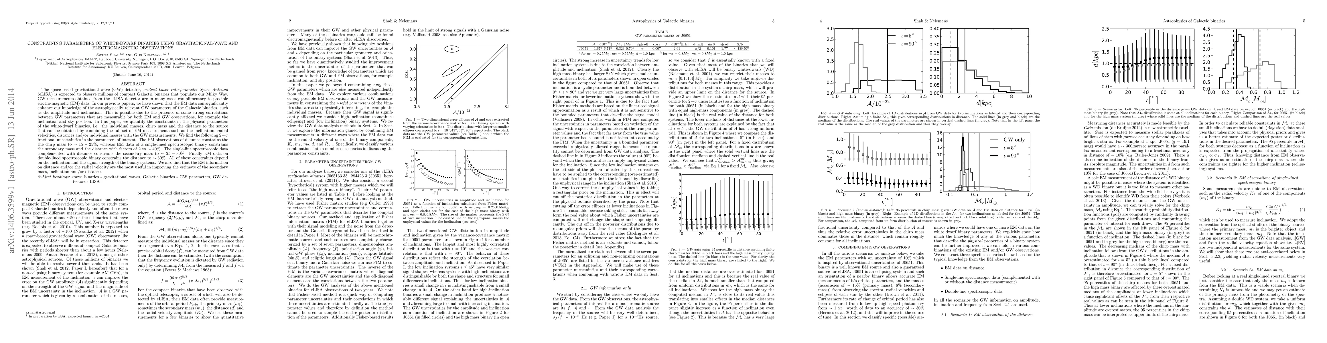 A study uses gravitational waves and electromagnetic observations to constrain parameters of white-dwarf binaries, finding that electromagnetic data can improve estimates of mass, distance, and inclination with varying degrees of accuracy.