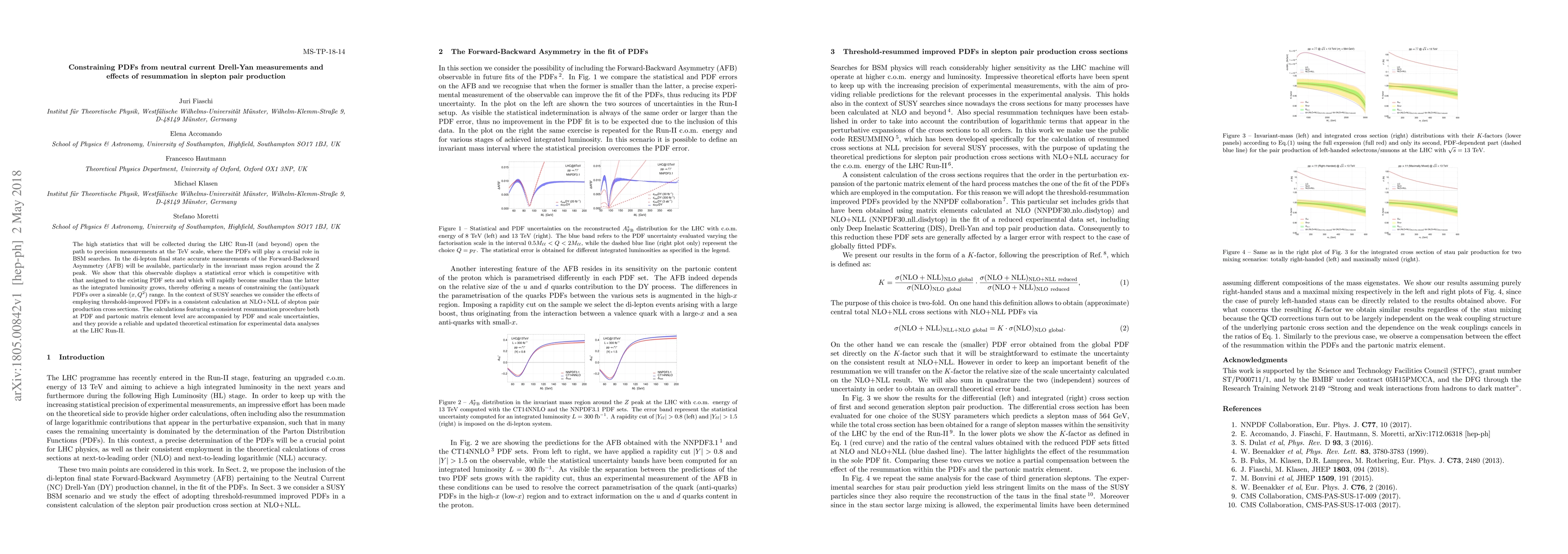 This paper discusses the potential of LHC Run-II data to constrain parton distribution functions (PDFs) through precision measurements of the Forward-Backward Asymmetry in neutral current Drell-Yan processes. It also examines the impact of resummation techniques on the theoretical predictions for slepton pair production cross sections in SUSY searches.