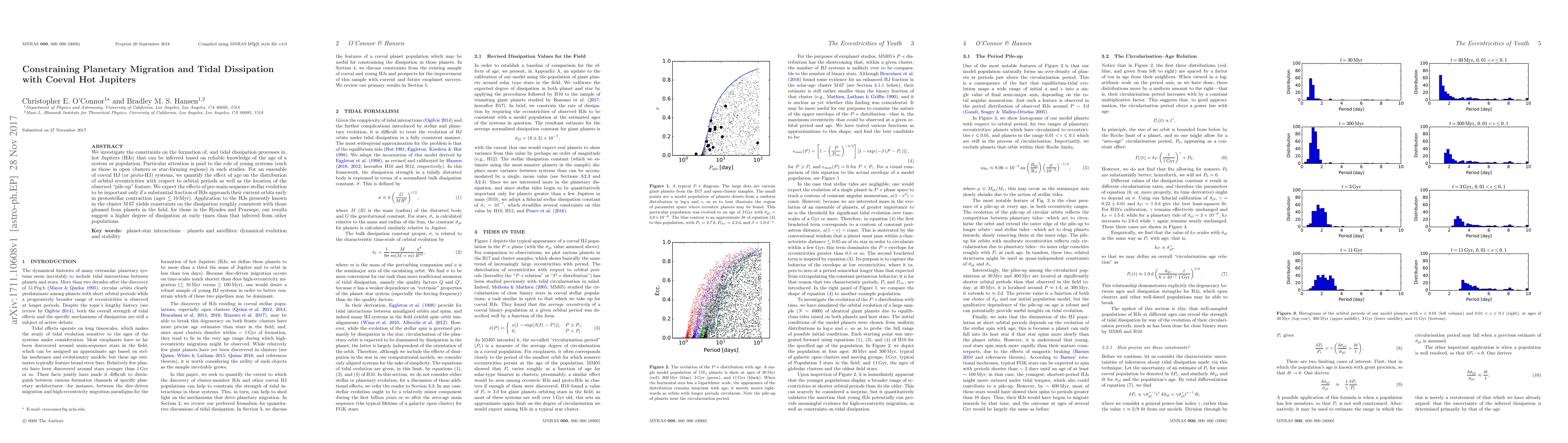 This paper examines the formation and tidal dissipation processes in hot Jupiters using coeval systems, focusing on the impact of system age on orbital eccentricities and the "pile-up" feature. It finds that pre-main-sequence stellar evolution significantly affects younger systems, leading to higher dissipation in clusters like Hyades and Praesepe compared to field planets.