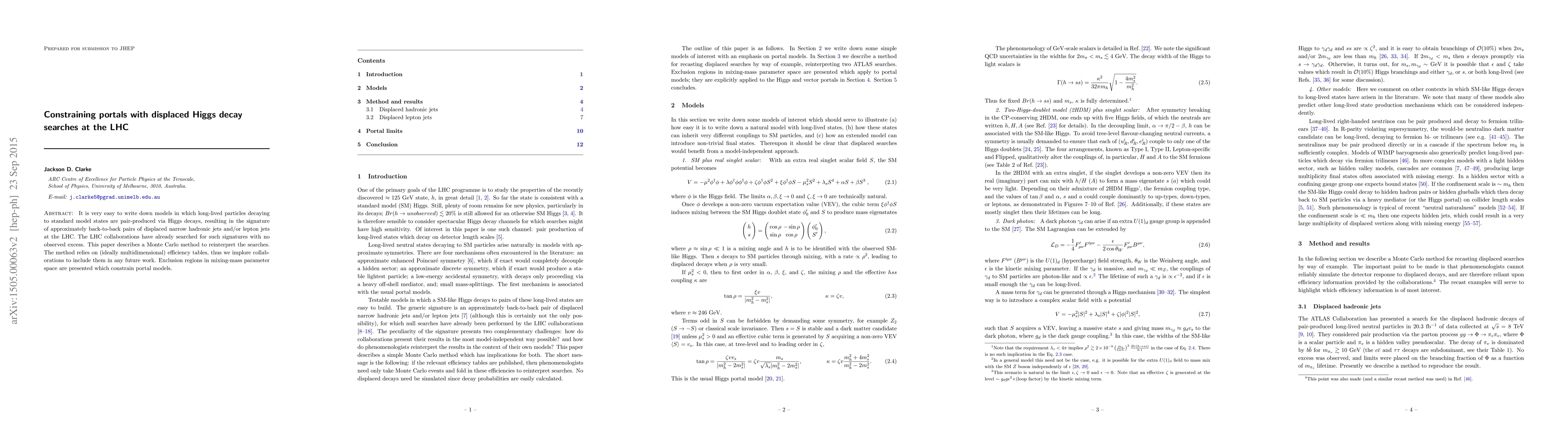 This paper reinterprets LHC searches for displaced jets and lepton jets from Higgs decays to constrain portal models featuring long-lived particles, presenting exclusion regions in mixing-mass parameter space and urging collaborations to include efficiency tables for future work.