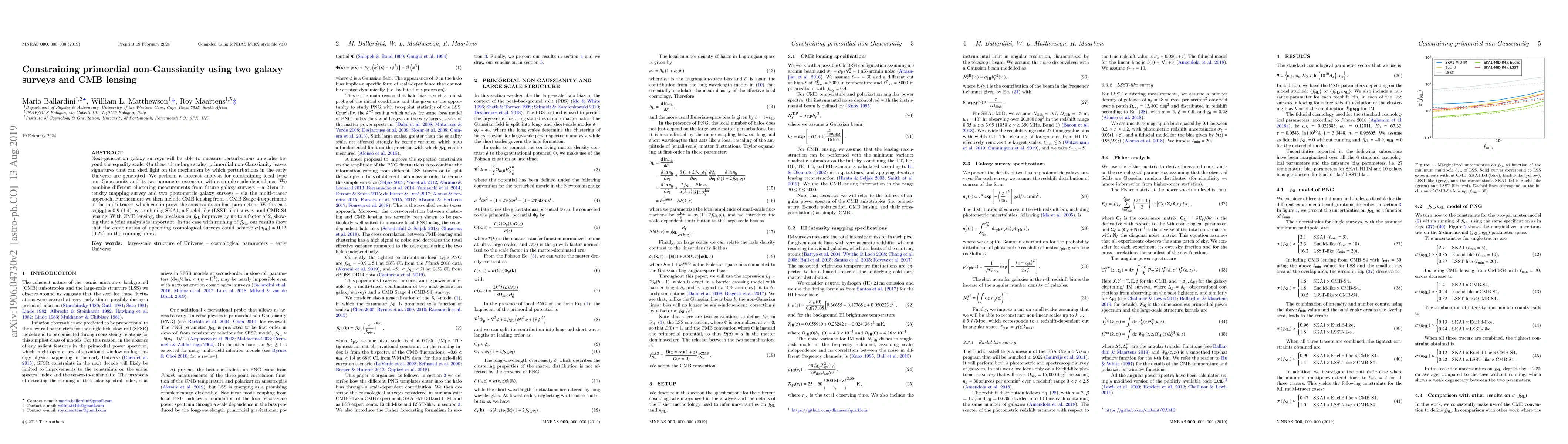 This paper forecasts the ability to constrain primordial non-Gaussianity using data from future galaxy surveys and CMB lensing. Combining galaxy surveys and CMB lensing from a Stage 4 experiment improves constraints on non-Gaussianity parameters, achieving $\sigma(f_{\rm NL}) \simeq 0.9$ (1.4) and $\sigma(n_{\rm NL}) \simeq 0.12$ (0.22) for different survey combinations.