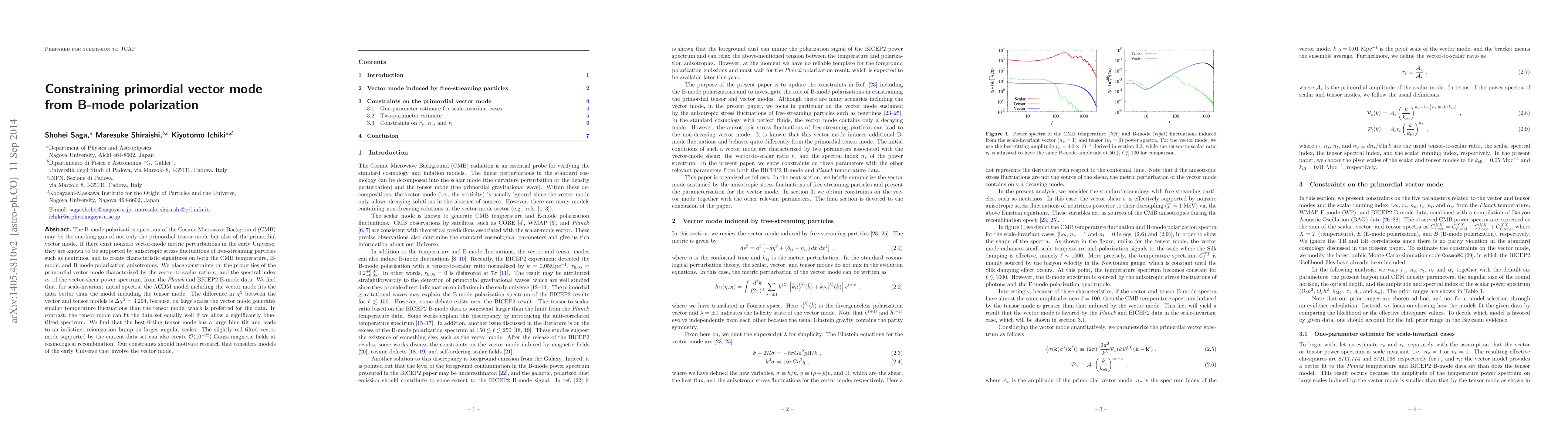 This paper constrains primordial vector mode properties using B-mode polarization data from the Planck and BICEP2 experiments. It finds that a vector mode, characterized by the vector-to-scalar ratio $r_{v}$ and spectral index $n_{v}$, fits the data better than a tensor mode, especially for scale-invariant spectra, due to smaller temperature fluctuations.