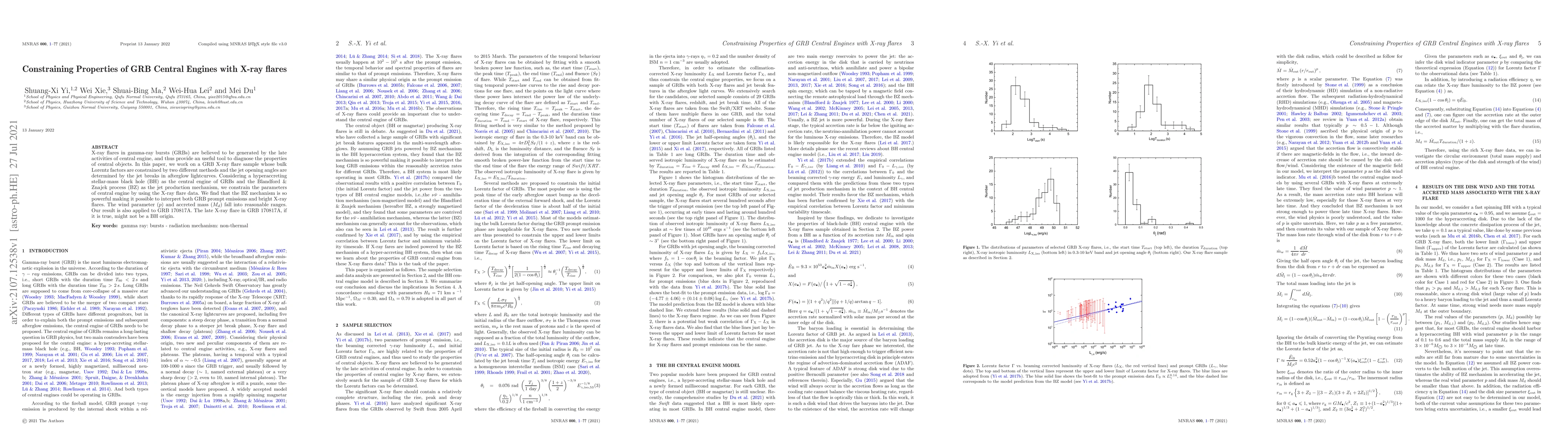 This paper investigates X-ray flares in gamma-ray bursts (GRBs) to constrain the properties of their central engines, finding that the Blandford-Znajek mechanism can explain both prompt emissions and bright X-ray flares, with the wind parameter and accreted mass falling within reasonable ranges. The study also suggests that the late X-ray flare in GRB 170817A may not originate from a black hole.