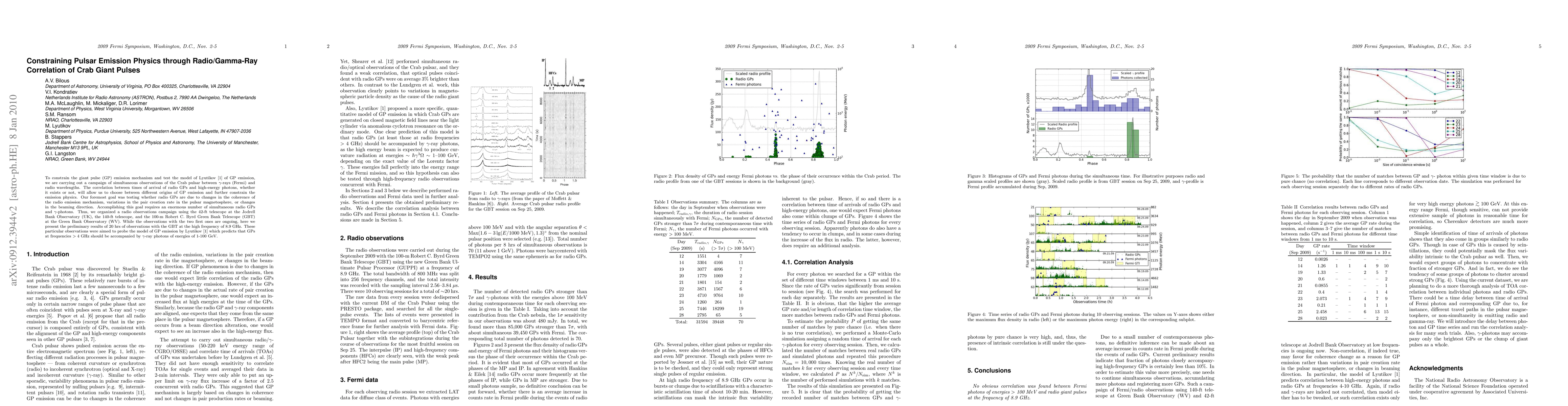Researchers conducted simultaneous observations of the Crab pulsar to study giant pulses and test a model predicting gamma-ray emission accompanies high-frequency GPs. Their preliminary results show correlation between radio GP times and gamma-ray photons, hinting at the Lyutikov model's validity.