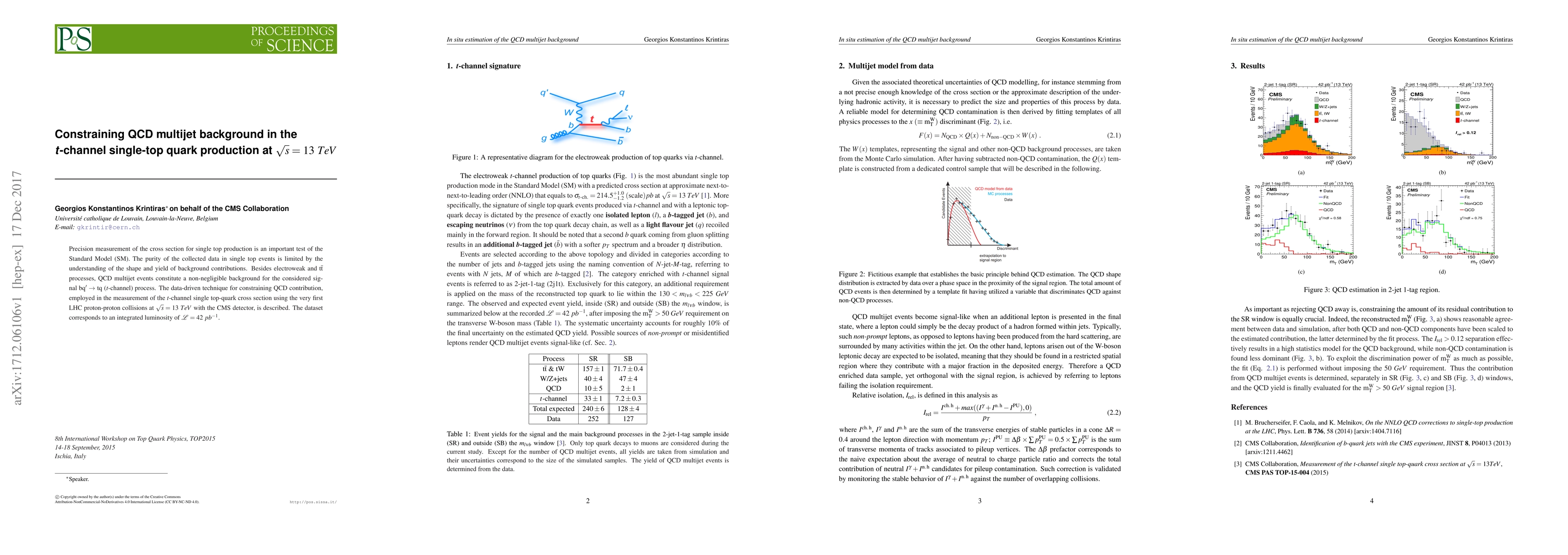 Precision measurement of the cross section for single top production is an important test of the Standard Model (SM). The purity of the collected data in single top events is limited by the understanding of the shape and yield of background contributions. Besides electroweak and $\rm{t\bar{t}}$ processes, QCD multijet events constitute a non-negligible background for the considered signal bq$'\rightarrow$ tq ($\textit{t}$-channel) process. The data-driven technique for constraining QCD contribution, employed in the measurement of the $\textit{t}$-channel single top-quark cross section using the very first LHC proton-proton collisions at $\sqrt{s}=13\ TeV$ with the CMS detector, is described. The dataset corresponds to an integrated luminosity of $\mathcal{L}=42\ pb^{\mathrm{-1}}$.