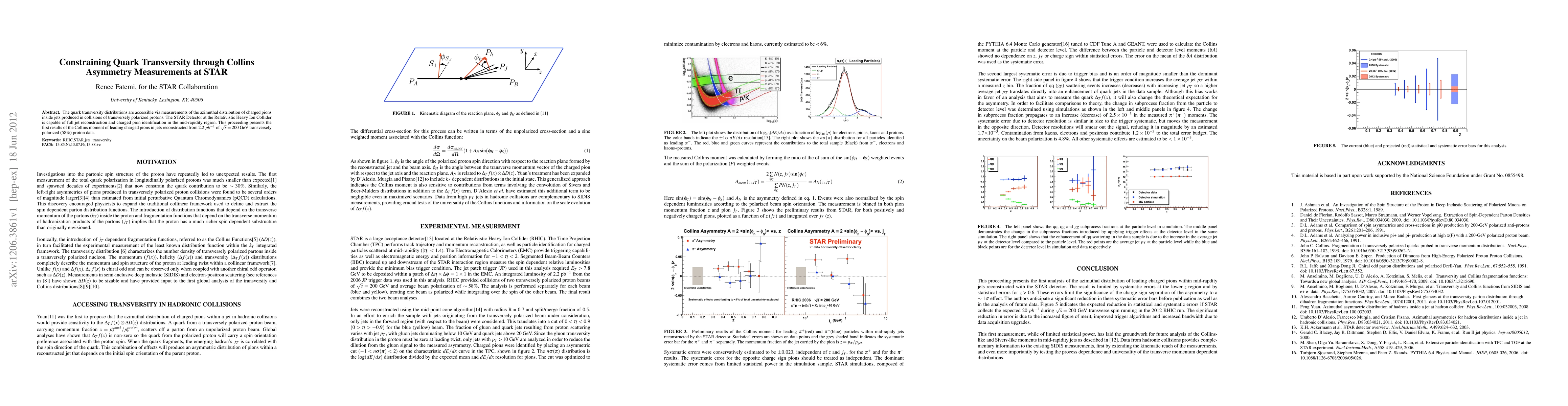 This paper reports initial findings from the STAR Detector at RHIC on the quark transversity distributions, using Collins asymmetry measurements of charged pions in jets from transversely polarized proton collisions at 200 GeV. These results provide new insights into the understanding of quark transversity.