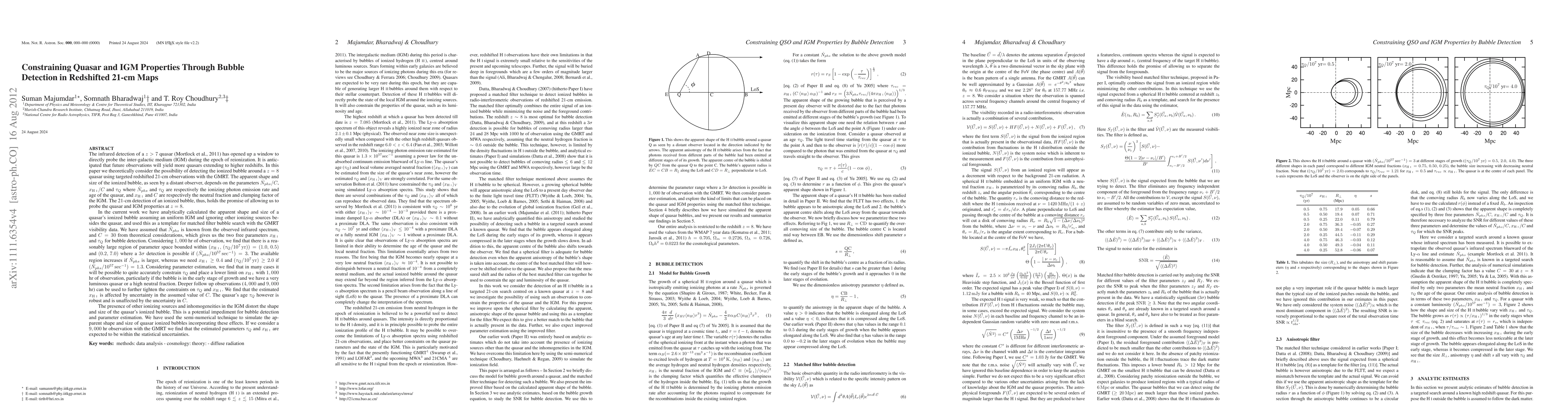 This paper explores the detection of ionized bubbles around high-redshift quasars using redshifted 21-cm observations with the GMRT, aiming to constrain the properties of the intergalactic medium (IGM) during reionization. The study finds that with sufficient observation time, it is feasible to detect these bubbles and estimate parameters like the neutral hydrogen fraction and quasar age.