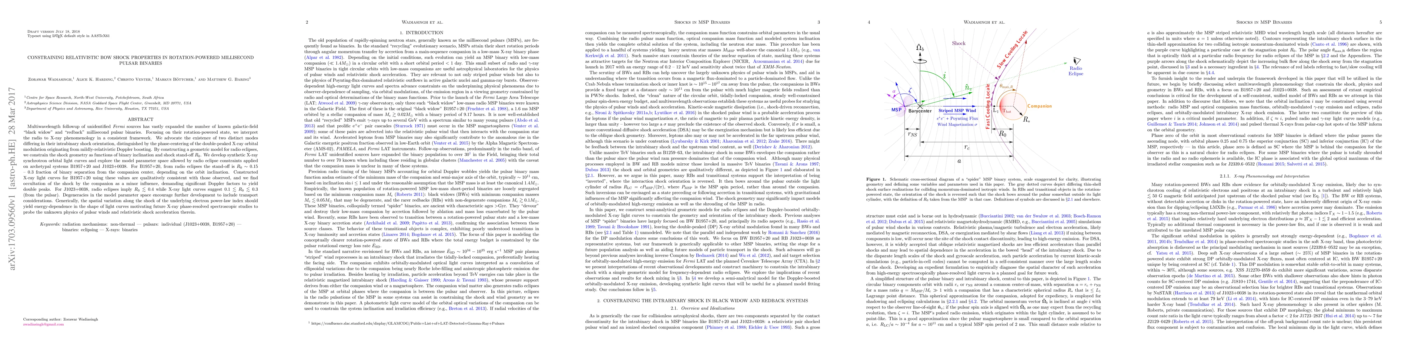 Researchers investigate relativistic bow shock properties in millisecond pulsar binaries using radio to X-ray observations and constrain the shock geometry based on binary inclination and stand-off distance.