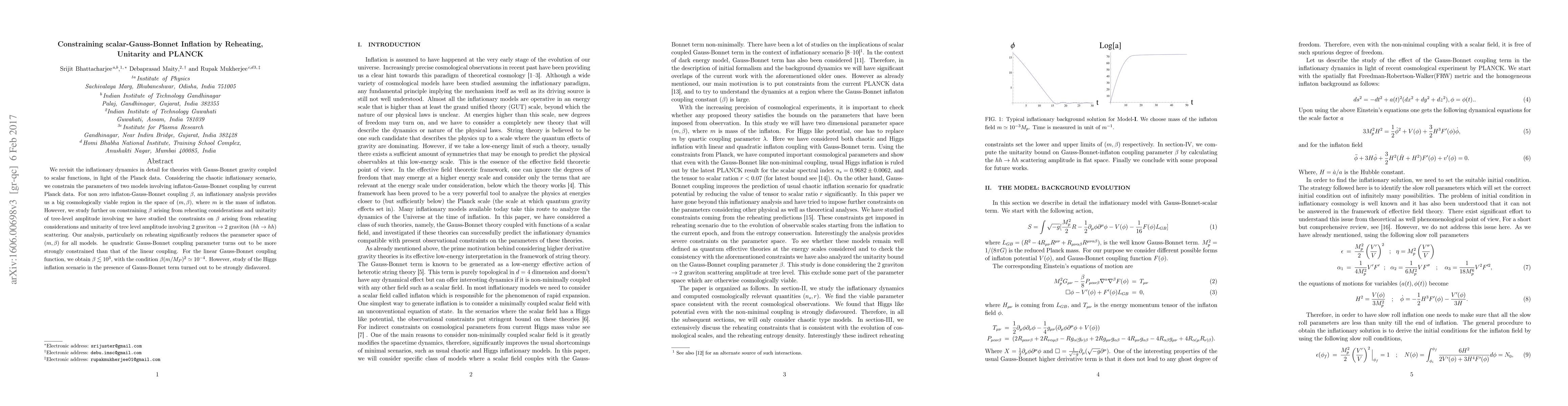 We revisit the inflationary dynamics in detail for theories with Gauss-Bonnet gravity coupled to scalar functions, in light of the Planck data. Considering the chaotic inflationary scenario, we constrain the parameters of two models involving inflaton-Gauss-Bonnet coupling by current Planck data. For non zero inflaton-Gauss-Bonnet coupling $\beta$, an inflationary analysis provides us a big cosmologically viable region in the space of $(m,\beta)$, where $m$ is the mass of inflaton. However, we study further on constraining $\beta$ arising from reheating considerations and unitarity of tree-level amplitude involving we have studied the constraints on $\beta$ arising from reheating considerations and unitarity of tree level amplitude involving $2$ graviton $\rightarrow 2$ graviton ($h h\rightarrow hh$) scattering. Our analysis, particularly on reheating significantly reduces the parameter space of $(m,\beta)$ for all models. he quadratic Gauss-Bonnet coupling parameter turns out to be more strongly constrained than that of the linear coupling. For the linear Gauss-Bonnet coupling function, we obtain $\beta \lesssim 10^3$, with the condition $\beta (m/M_P)^2 \simeq 10^{-4}$. However, study of the Higgs inflation scenario in the presence of Gauss-Bonnet term turned out to be strongly disfavored.