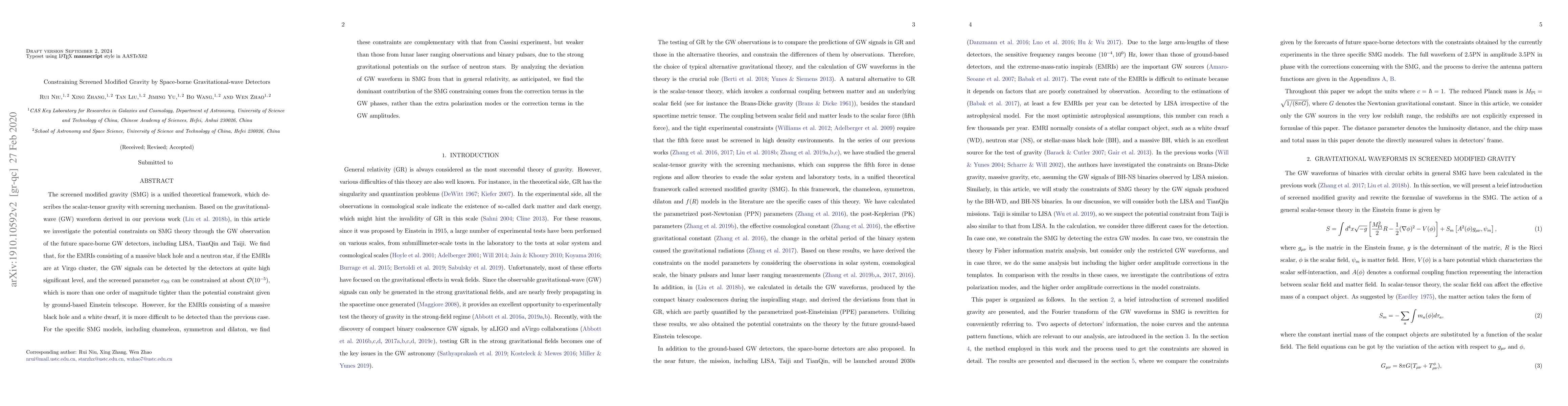 This paper investigates the potential constraints on screened modified gravity (SMG) theory through gravitational-wave (GW) observations from future space-borne detectors like LISA, TianQin, and Taiji. The study finds that space-borne GW detectors can significantly constrain the screened parameter $\epsilon_{\rm NS}$ at a level of $\mathcal{O}(10^{-5})$ for extreme mass ratio inspirals (EMRIs) involving massive black holes and neutron stars, outperforming ground-based detectors.