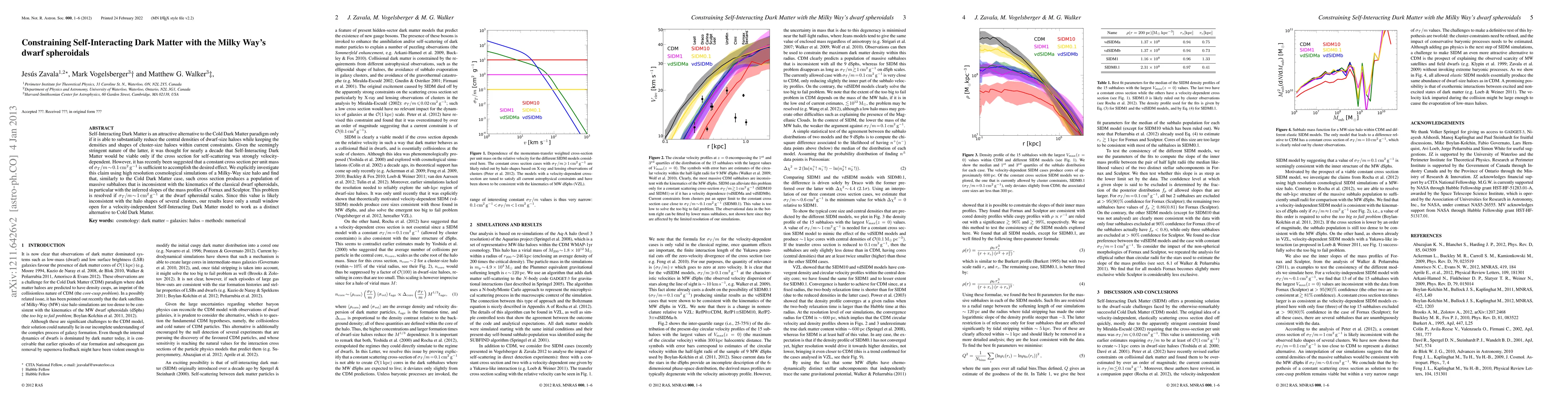 Self-Interacting Dark Matter is an attractive alternative to the Cold Dark Matter paradigm only if it is able to substantially reduce the central densities of dwarf-size haloes while keeping the densities and shapes of cluster-size haloes within current constraints. Given the seemingly stringent nature of the latter, it was thought for nearly a decade that SIDM would be viable only if the cross section for self-scattering was strongly velocity-dependent. However, it has recently been suggested that a constant cross section per unit mass of sigma_T/m~0.1cm^2/g is sufficient to accomplish the desired effect. We explicitly investigate this claim using high resolution cosmological simulations of a Milky-Way size halo and find that, similarly to the Cold Dark Matter case, such cross section produces a population of massive subhaloes that is inconsistent with the kinematics of the classical dwarf spheroidals, in particular with the inferred slopes of the mass profiles of Fornax and Sculptor. This problem is resolved if sigma_T/m~1cm^2/g at the dwarf spheroidal scales. Since this value is likely inconsistent with the halo shapes of several clusters, our results leave only a small window open for a velocity-independent Self-Interacting Dark Matter model to work as a distinct alternative to Cold Dark Matter.