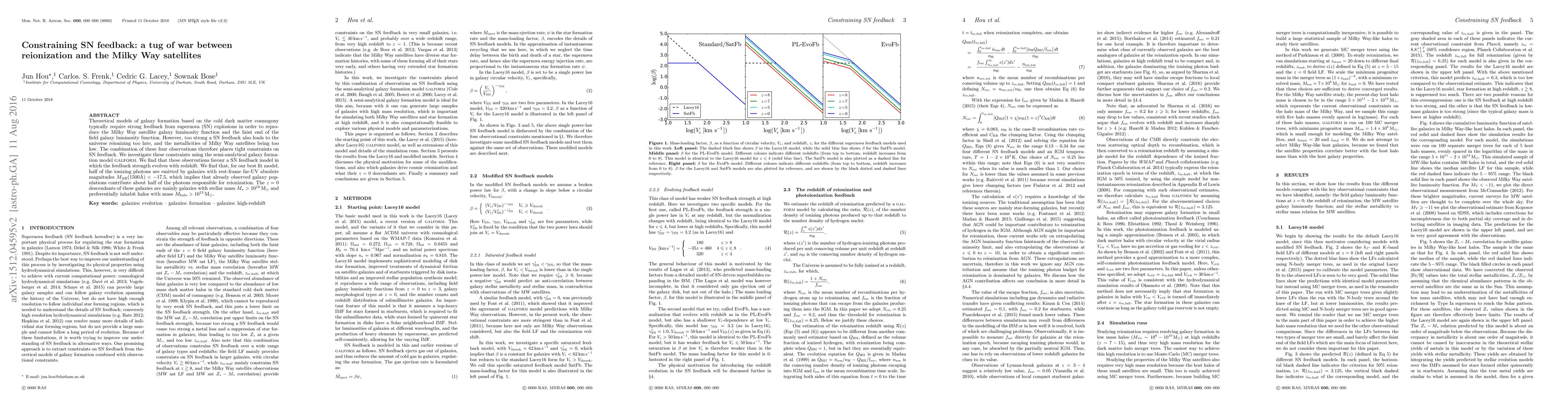 Theoretical models of galaxy formation based on the cold dark matter cosmogony typically require strong feedback from supernova (SN) explosions in order to reproduce the Milky Way satellite galaxy luminosity function and the faint end of the field galaxy luminosity function. However, too strong a SN feedback also leads to the universe reionizing too late, and the metallicities of Milky Way satellites being too low. The combination of these four observations therefore places tight constraints on SN feedback. We investigate these constraints using the semi-analytical galaxy formation model galform. We find that these observations favour a SN feedback model in which the feedback strength evolves with redshift. We find that, for our best fit model, half of the ionizing photons are emitted by galaxies with rest-frame far-UV absolute magnitudes $M_{\rm AB}(1500{\rm \AA})<-17.5$, which implies that already observed galaxy populations contribute about half of the photons responsible for reionization. The $z=0$ descendants of these galaxies are mainly galaxies with stellar mass $M_*>10^{10}\,{\rm M}_{\odot}$ and preferentially inhabit halos with mass $M_{\rm halo}>10^{13}\,{\rm M}_{\odot}$.