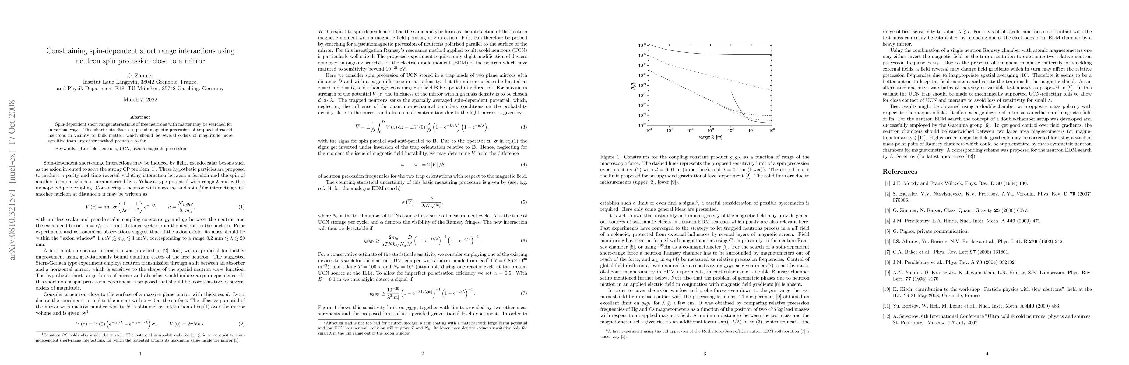 This paper explores the use of neutron spin precession near a mirror to detect spin-dependent short-range interactions with matter, proposing this method as significantly more sensitive than existing techniques. The study focuses on pseudomagnetic precession of ultracold neutrons in proximity to bulk matter.