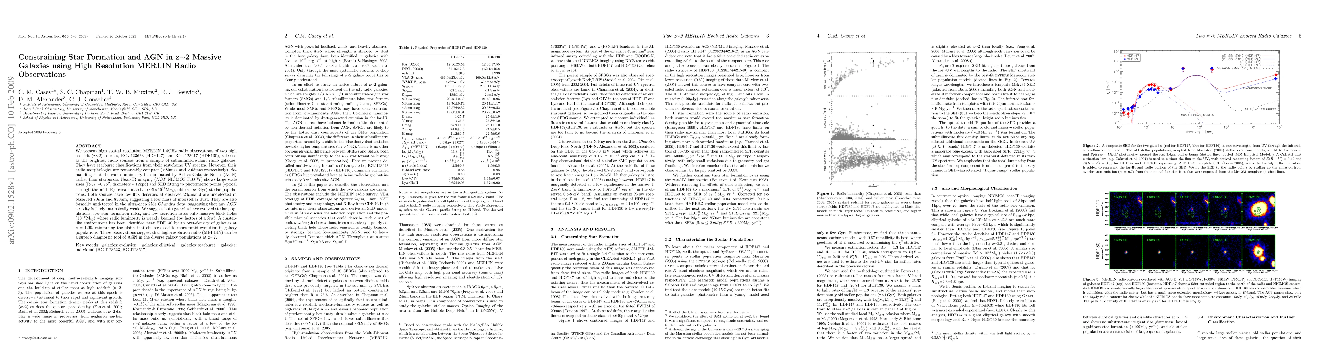 This study uses high-resolution MERLIN radio observations to investigate two z~2 galaxies, RGJ123623 and RGJ123617, finding their compact radio morphologies suggest AGN dominance over starbursts. The galaxies have evolved stellar populations, low star formation, and weak AGN activity, indicating rapid evolution in cluster-like environments.