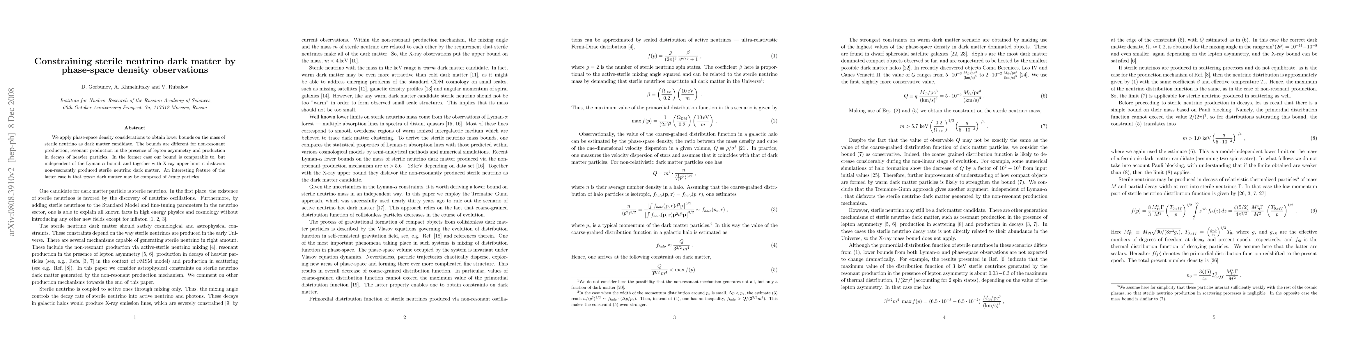 Summary: This paper establishes lower mass bounds for sterile neutrinos as dark matter candidates using phase-space density observations, showing distinct results for different production mechanisms. It finds that non-resonantly produced sterile neutrinos are disfavored by combining these bounds with X-ray limits.