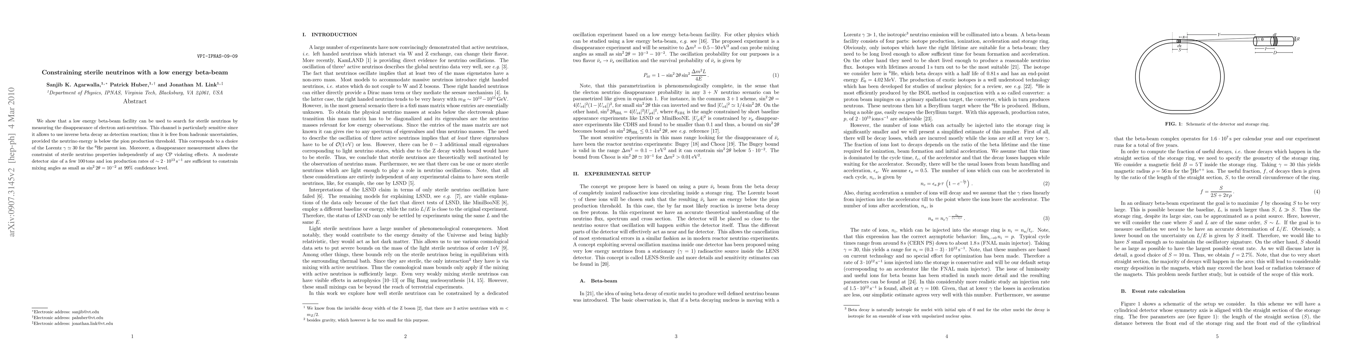 This paper demonstrates that a low energy beta-beam can effectively search for sterile neutrinos by measuring the disappearance of electron anti-neutrinos, utilizing inverse beta decay for detection, which avoids hadronic uncertainties. With a detector size of a few hundred tons and sufficient ion production rates, the method can constrain mixing angles as small as \sin^22\theta=0.01 at 99% confidence level.