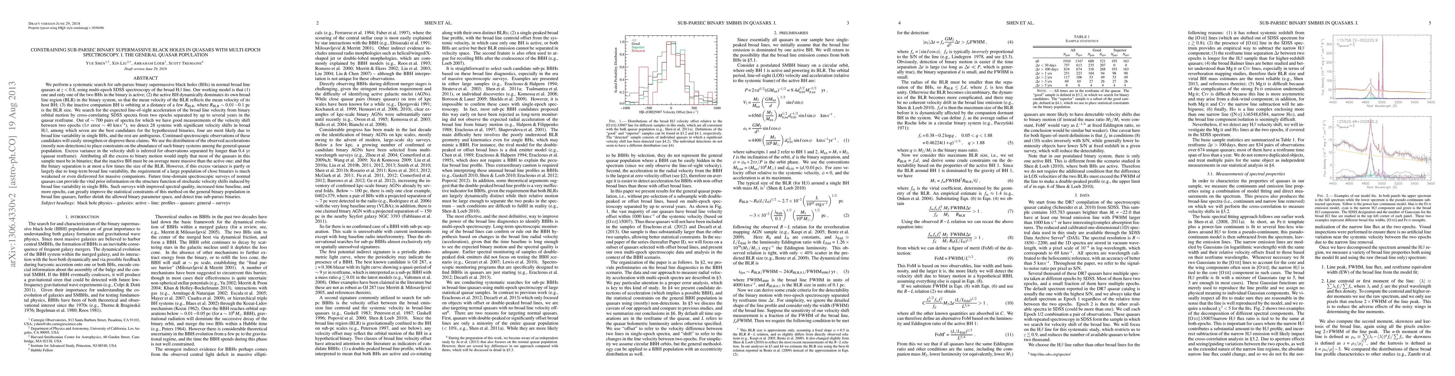 A study using multi-epoch spectroscopy of quasars found 28 systems with significant velocity shifts in their broad Hbeta lines, suggesting the presence of binary supermassive black holes, but did not detect a large number of such systems, weakening the need for a high abundance of close binaries.