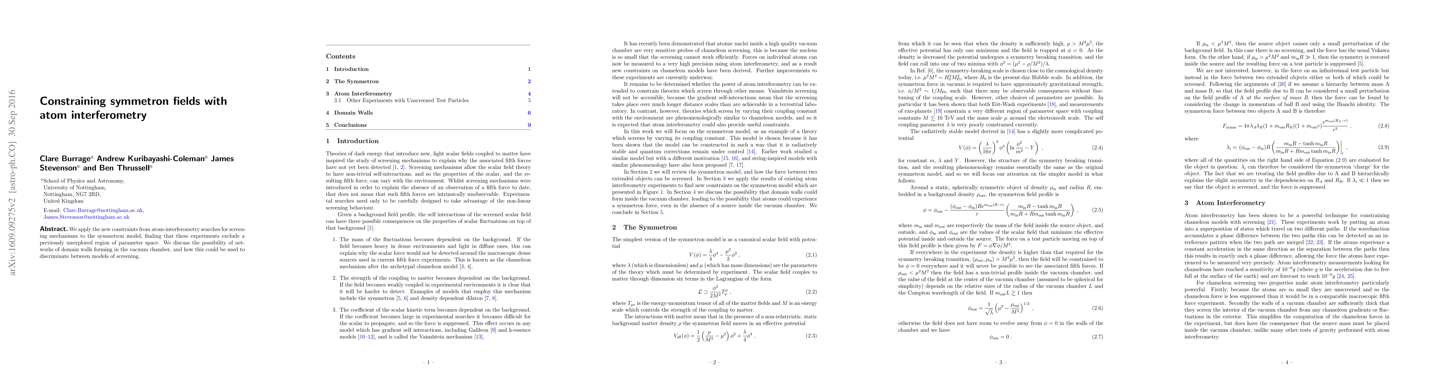 We apply the new constraints from atom-interferometry searches for screening mechanisms to the symmetron model, finding that these experiments exclude a previously unexplored region of parameter space. We discuss the possibility of networks of domain walls forming in the vacuum chamber, and how this could be used to discriminate between models of screening.