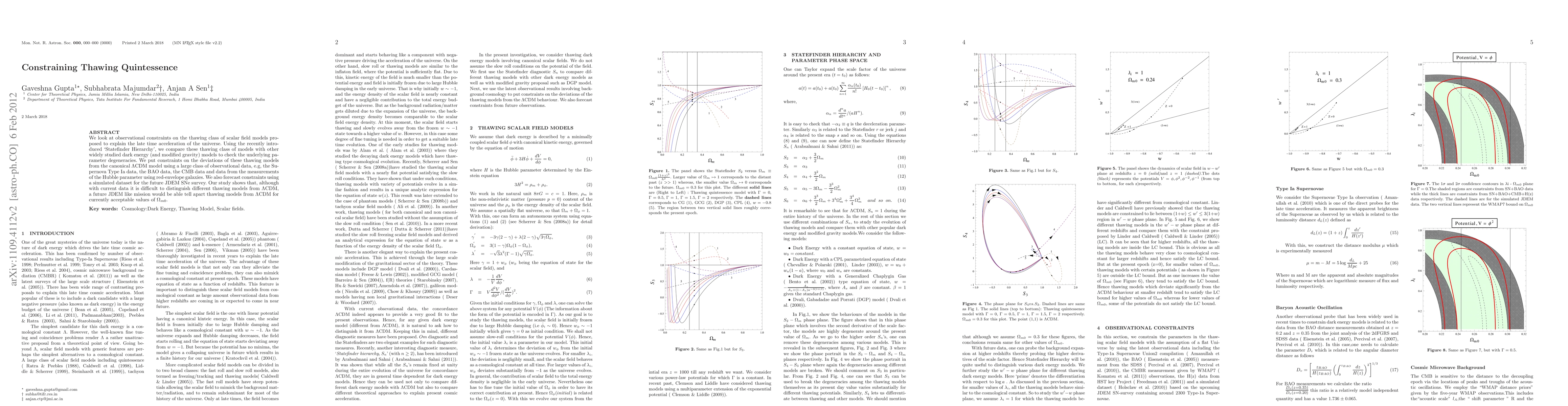 The paper introduces the Statefinder Hierarchy as a tool for constraining and distinguishing thawing dark energy models using various observational datasets and forecasting future constraints with simulated JDEM SNe survey data.