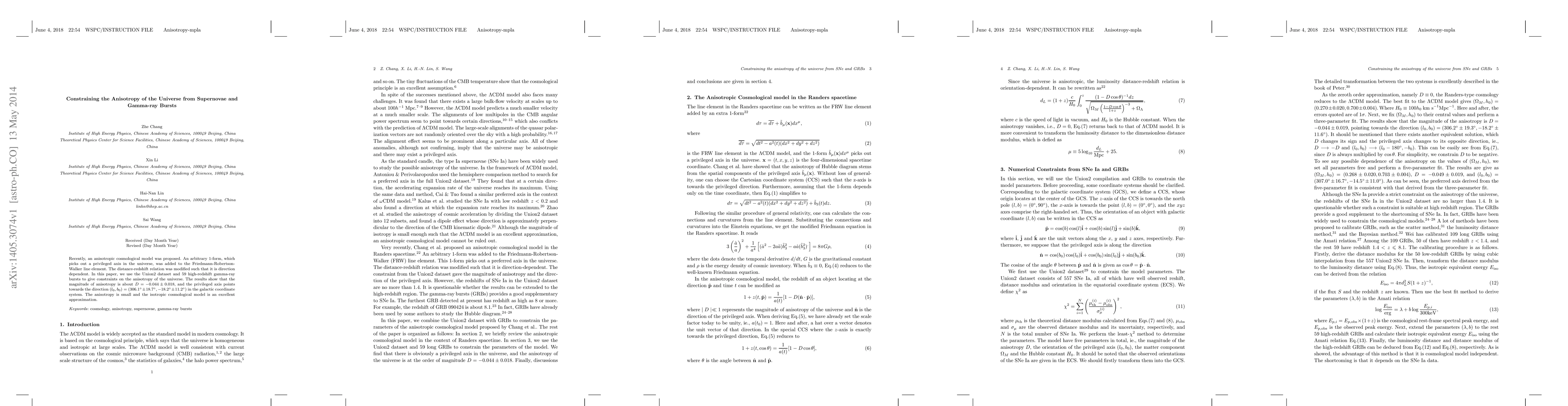 Recently, an anisotropic cosmological model was proposed. An arbitrary 1-form, which picks out a privileged axis in the universe, was added to the Friedmann-Robertson-Walker line element. The distance-redshift relation was modified such that it is direction dependent. In this paper, we use the Union2 dataset and 59 high-redshift gamma-ray bursts to give constraints on the anisotropy of the universe. The results show that the magnitude of anisotropy is about $D=-0.044\pm0.018$, and the privileged axis points towards the direction $(l_0,b_0)=(306.1^{\circ}\pm 18.7^{\circ},-18.2^{\circ}\pm 11.2^{\circ})$ in the galactic coordinate system. The anisotropy is small and the isotropic cosmological model is an excellent approximation.