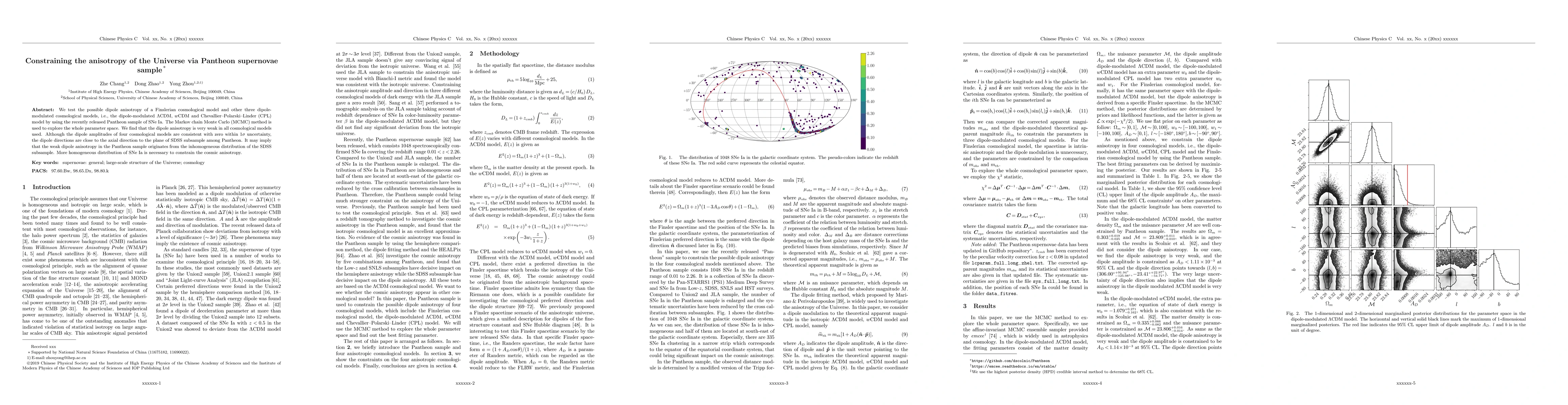 This paper investigates the dipole anisotropy in several cosmological models using the Pantheon supernovae sample, employing MCMC methods. The study finds that the dipole anisotropy is weak across models, suggesting that any observed anisotropy may stem from the inhomogeneous distribution of the underlying data, particularly the SDSS subsample.
