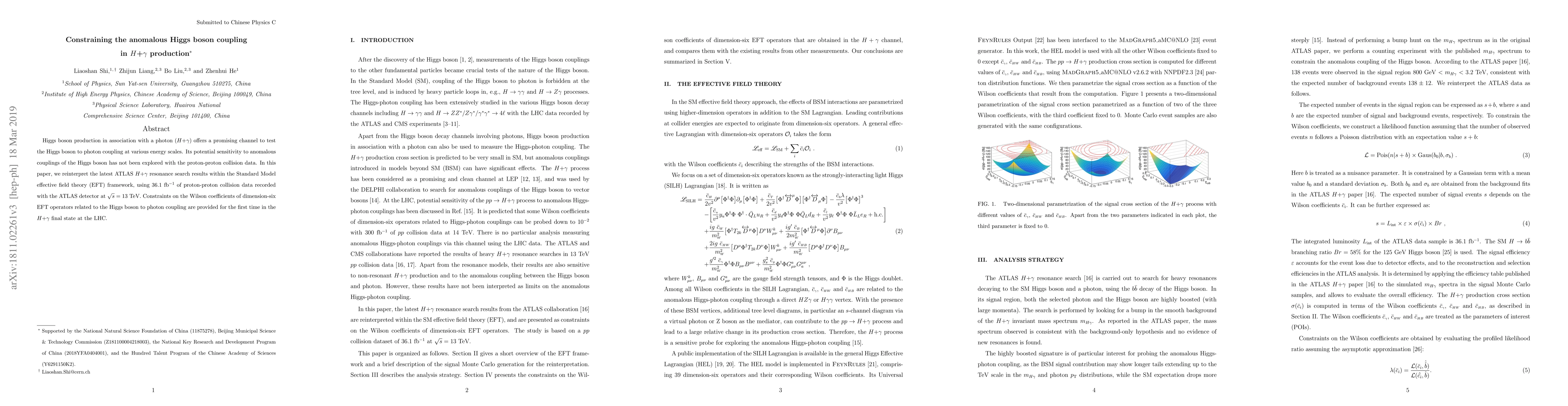 This paper reinterprets the latest ATLAS results on $H$+$\gamma$ production using 36.1 fb$^{-1}$ of data at $\sqrt{s}=13$ TeV, providing the first constraints on anomalous Higgs boson to photon couplings within the Standard Model effective field theory framework.