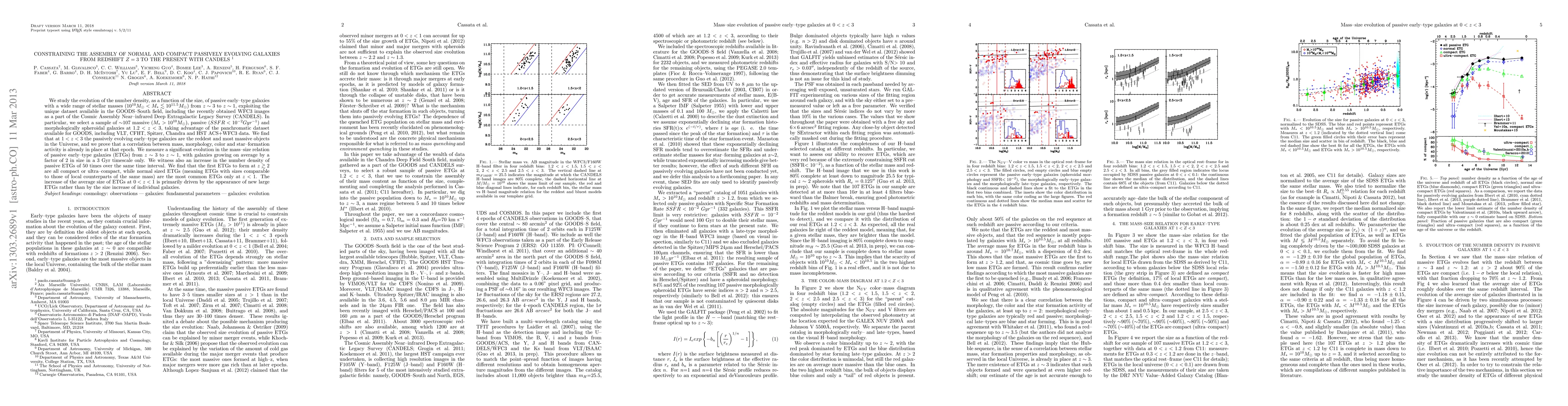 This study examines the evolution of passive early-type galaxies from redshift z=3 to the present using the CANDELS dataset, finding significant growth in size and number density over time. It reveals a correlation between mass, morphology, color, and star-formation activity, with compact galaxies dominating at higher redshifts.