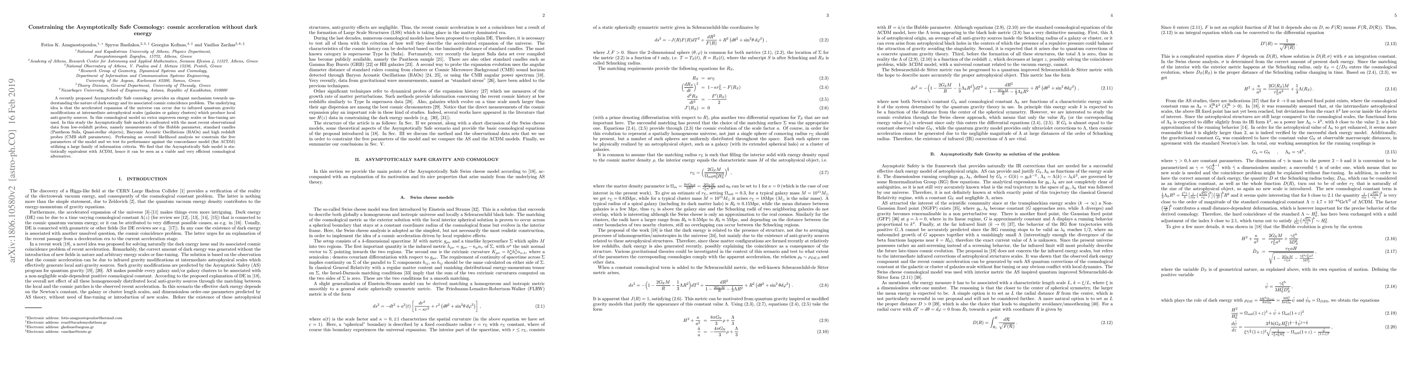This paper explores an Asymptotically Safe cosmology model that explains cosmic acceleration without invoking dark energy, attributing it to quantum gravity modifications at astrophysical scales. The study finds that this model is statistically equivalent to the $\Lambda$CDM model when tested against recent observational data, suggesting it as a viable alternative.
